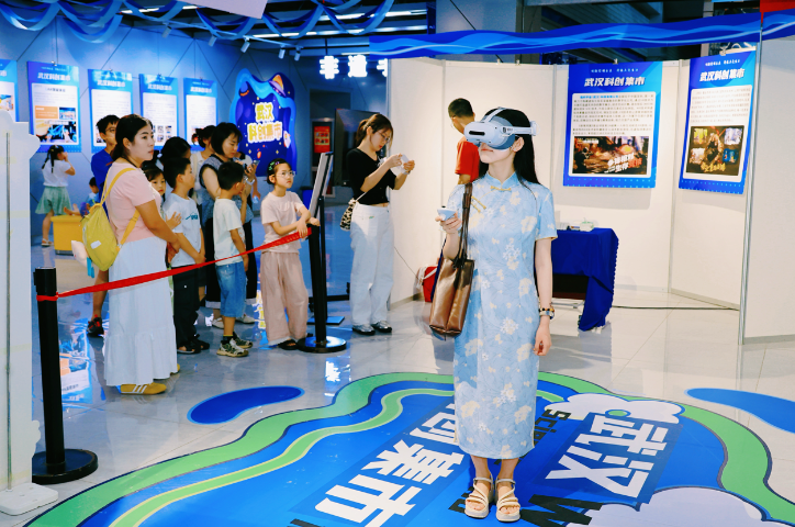 这场奇境体验的背后,是数字技术对文化传播的重构。该公司相关负责人告诉记者,团队通过XR技术构建起虚实共生的数字展示,将空间计算,混合现实(MR)和虚拟现实(VR)技术深度融合:MR技术如“数字画笔”,将虚拟元素精准嵌入现实空间,让恐龙“踏”入科技馆展厅与游客近身对决;VR技术则化身为“时空穿梭机”带领人们穿越,或至兵马俑坑见证秦代军阵的威严,或置身黄鹤楼俯瞰千年江城的变迁。这种技术赋能的体验,不仅让文化遗产从静态展示变为动态交互,更让历史故事从书本文字跃然眼前,实现了“让文化活起来”的传播突破。
