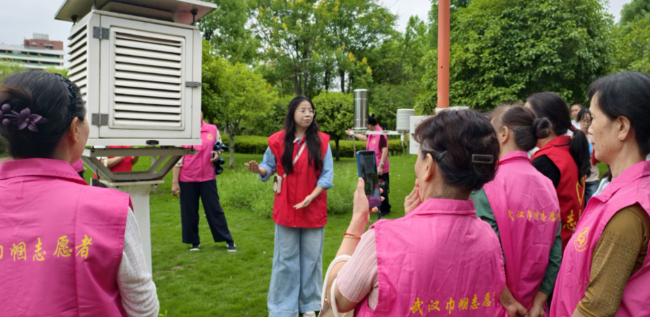 活动组织金银湖街恒大城社区60余名居民走进武汉市气象科普教育基地,在科技志愿者的全程专业讲解下,居民们近距离接触并实地观察了雨量筒、风向标、风力测试仪器等气象监测核心设施设备。志愿者通过现场演示与原理讲解,让居民直观了解到气象数据的采集方式与监测逻辑。