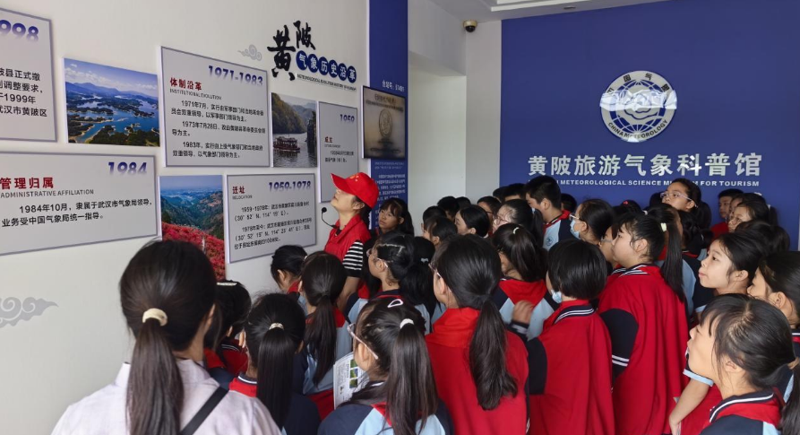 随后,师生们走进黄陂旅游气象科普馆,近距离观察风向风速仪、雨量传感器等气象监测设备,亲手触摸、实地探究仪器原理与用途;气象志愿者现场演示移动气象探测设备的操作,生动解读从数据采集、分析处理到形成天气结论的全过程,展现现代科技如何支撑精准预报。