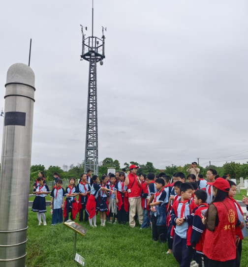 研学之旅首站聚焦“中国百年台站”——黄陂气象站。在科协志愿者与气象工作人员的引导下,师生们系统回顾了黄陂气象事业从抗战时期至今的发展历程,深入了解台站管理体制的沿革与气象业务的迭代升级。工作人员结合黄陂地域气候特征,重点讲解了气象信息在国防安全、灾害应急响应及地方经济发展中的关键作用,引导学生们思考气象与家国的紧密联系,让“铭记历史、自强奋进”的种子在心中萌芽。