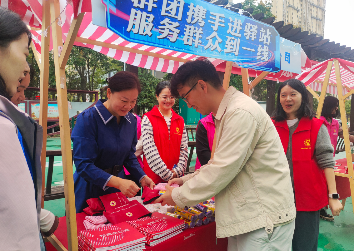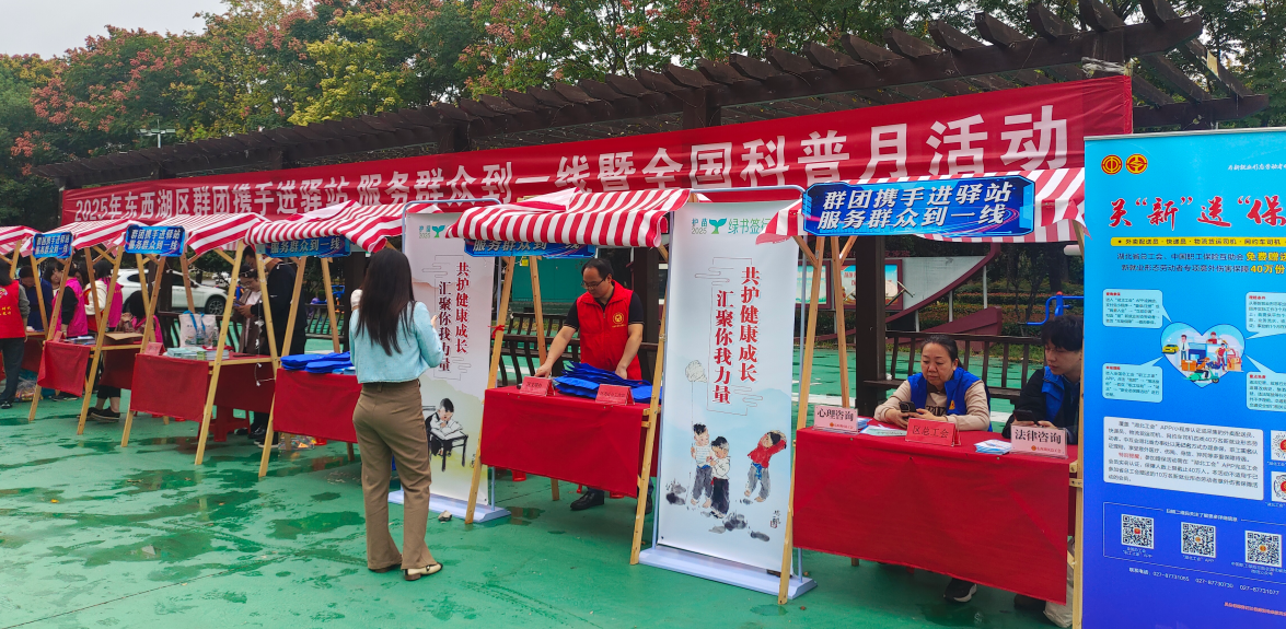为凝聚群团组织工作合力,精准对接新就业形态劳动者多元化需求,9月25日上午,东西湖区委社会工作部、区总工会、区科协、团区委、区妇联、区残联、区红十字会、区文明办、区城管执法局、区应急管理局等12家单位,联合长墩堤社区工会,在长墩堤社区户外职工爱心驿站开展“群团携手进驿站,服务群众到一线暨全国科普月”活动。活动聚焦快递小哥、外卖配送员、网络主播、网约车司机、环卫工人等群体,将暖心服务与保障送到劳动者身边。