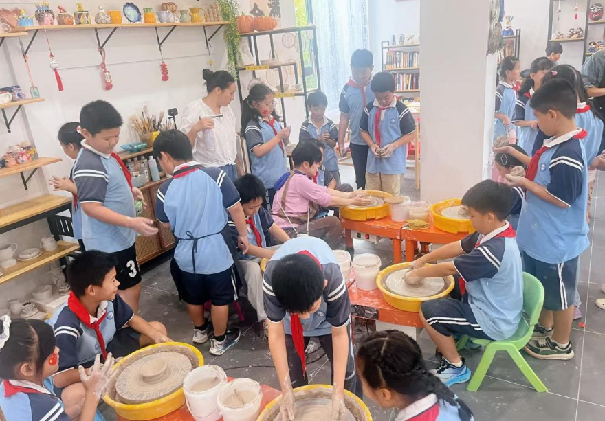 活动最后,“做中国传统手工(陶艺),向科学敬礼”环节温情上演。非遗老师现场授课,为学生们讲解陶艺文化知识,并指导大家制作“科技强国”相关的陶艺作品。孩子们专注投入,用稚嫩的双手塑造出一个个充满童趣的陶艺品,有火箭、航母、飞机等,以此向即将到来的国庆致敬,在体验传统非遗文化的同时,增强文化自信与民族自豪感。