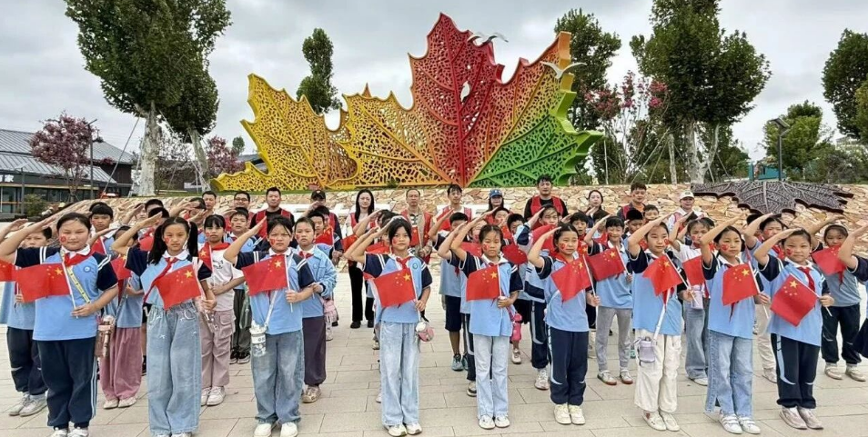 2025年9月18日上午,梅花池社区联合将军路文旅公司举办的爱国主题户外研学活动顺利开展。辖区将军路二小和翠林居幼儿园共计90余名学生积极参与,在沉浸式体验中感悟历史、厚植爱国情怀。活动以“传承红色精神”为主线,设置四大特色环节,让红色基因在互动中浸润童心。在“讲英雄故事,做红色传人”环节,工作人员在梧桐雨公园向学生们生动讲述将军路“两堤一堡”(张公堤、东西湖大堤、碉堡群)与将军路围垦精神的由来,将厚重历史转化为鲜活故事,让辖区学生们深刻了解将军路的红色印记。