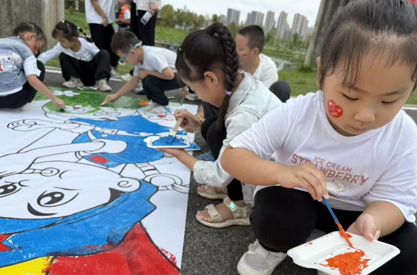 “画英雄形象,赞辉煌历程”环节里,学生们在大堤上拿起画笔,尽情描绘革命英雄的飒爽英姿与祖国的壮丽山河。五彩斑斓的画作中,既有对英雄的崇敬,也有对祖国的热爱,不仅锻炼了学生们的审美与创造能力,更将爱国种子悄然播撒心间。