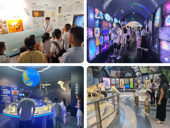 双节期间,武汉科技馆常设展厅人气火爆。在交通展厅,“KeKe老师故事会”国庆特别活动专门开设“逐梦蓝天庆华诞——飞行发展史”主题课堂。由科普辅导员带领小朋友了解人类飞行史和新中国航空事业发展史,并观摩辽宁舰、歼-15、运-20等大国重器的模型和照片。宇宙展厅内,许多家庭在星空走廊流连忘返,在“月球空间”展区了解我国深空探测的最新成就。在生命展厅,小朋友们通过AR眼镜“漫步”侏罗纪世界,探寻地球生命起源的故事。