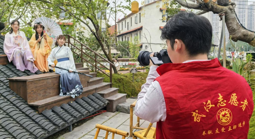 参与居民身着汉服,在石桥、翠竹、雕花窗棂间学习传统礼仪举止,体验古代生活场景。社区摄影团队同步记录这些充满文化韵味的瞬间,通过镜头语言展现传统服饰与乡村景致的和谐共生。