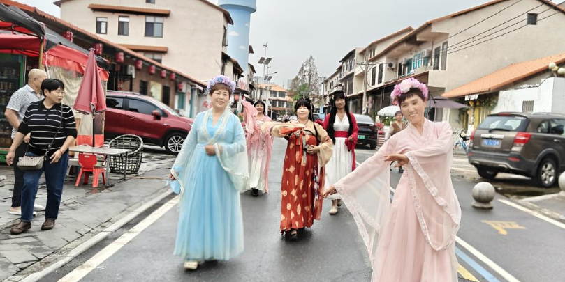 参与居民身着汉服,在石桥、翠竹、雕花窗棂间学习传统礼仪举止,体验古代生活场景。社区摄影团队同步记录这些充满文化韵味的瞬间,通过镜头语言展现传统服饰与乡村景致的和谐共生。