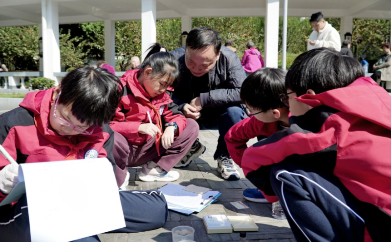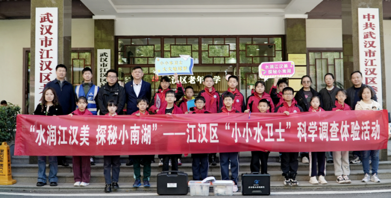 10月23日上午,武汉市常青实验小学16名小学生在江汉区小南湖公园参加“水润江汉美 探秘小南湖”——江汉区“小小水卫士”科学调查体验活动。本次活动以“家乡水资源调查”为主题,由武汉市生态环境局江汉区分局、江汉区教育局、江汉区水务和湖泊局、江汉区科协以及新华街道共同举办,通过实地探寻,现场实验等方式,带领学生认识和了解水知识,提升水资源保护意识的同时,感受生物多样性之美。