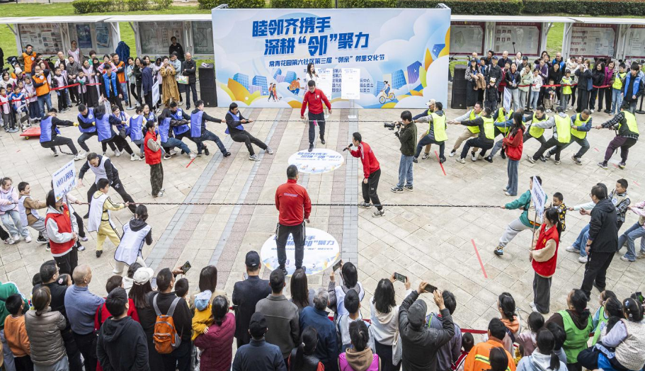 本届文化节以“睦邻齐携手 深耕邻聚力”为主题,通过举办拔河比赛、亲子趣味游戏、公益市集等系列活动,生动展现了社区“家文化”的深厚内涵。活动共吸引社区15个居民网格、辖区金碧物业、业委会及商户组成的31支队伍参赛,现场展现了居民团结友爱、和谐互助的精神风貌。