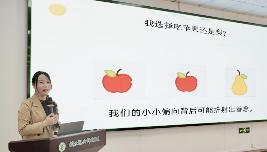 “相信‘人如其名’的请举手?不相信的呢?”温芳芳没有直接抛出结论,而是先引导现场同学表达观点。在收集不同声音后,她才娓娓道来:“这项发表于顶级期刊的研究指出,‘自证预言’效应在潜移默化中影响我们的人生轨迹——人们往往不自觉地活出名字所承载的社会期待。”她强调,心理学不是玄学,“每一个看似神奇的结论,背后都是严谨的数据、可重复的实验。科学家的精神,就是要用证据说话,而不是依赖直觉。”