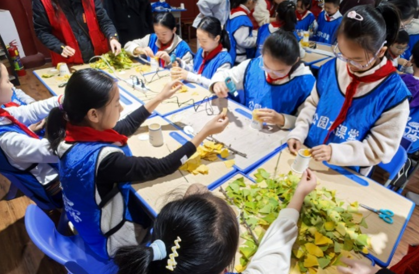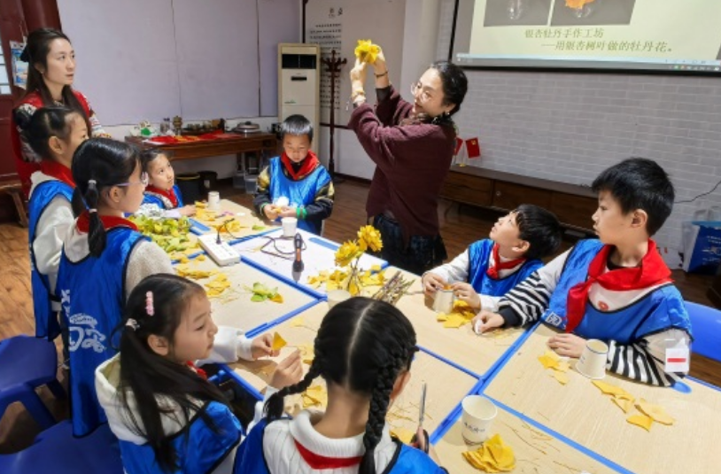 为丰富青少年周末课余生活,传承自然与手工文化,2025年11月14日上午,荣华街道建国社区、硚口公园大课堂、建乐村小学在硚口公园、尚和书院联合开展“金叶生花,少年巧作——银杏牡丹手作工坊”荣华街道社区教育一节好课活动,建乐村小学的同学们在自然探索与动手实践中收获满满。