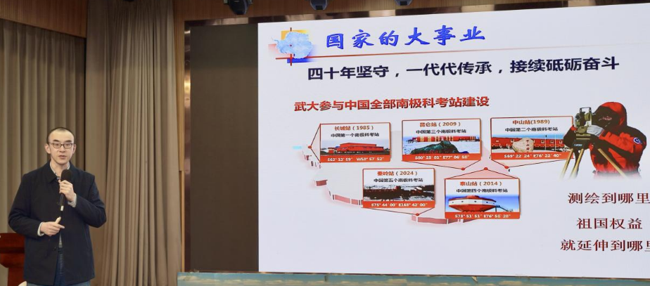 “为什么我们千辛万苦也要去南极?因为那是国家的大事业。”11月21日下午,在东西湖区吴家山第四小学的启智厅内,武汉大学中国南极测绘研究中心副教授安家春以《五星红旗在南极高高飘扬》为题,用一个“喝咖啡”的故事,为280名五年级学生叩开了中国极地科考波澜壮阔的历史之门,也让科学家精神的传承在一代代“极地人”的接续奋斗中变得可感可触。