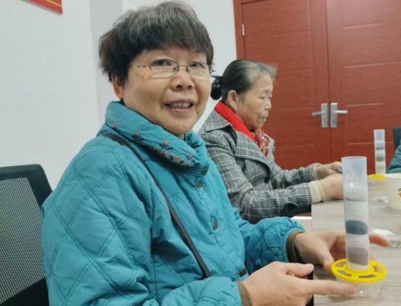 在节水实用知识分享环节,工作人员重点讲解了家庭污水简易过滤方法,通过图示演示了“纱布+活性炭+石英砂+鹅卵石”的分层过滤原理,让老人们明白简单材料也能实现污水初步净化。同时,围绕日常生活节水技巧展开详细介绍,从随手关闭水龙头、合理使用洗衣机、一水多用(如洗菜水浇花、洗衣水冲厕所),到选择节水器具、及时维修漏水管道等,覆盖洗漱、烹饪、清洁等多个场景,这些贴近生活的实用技巧让老人们受益匪浅。