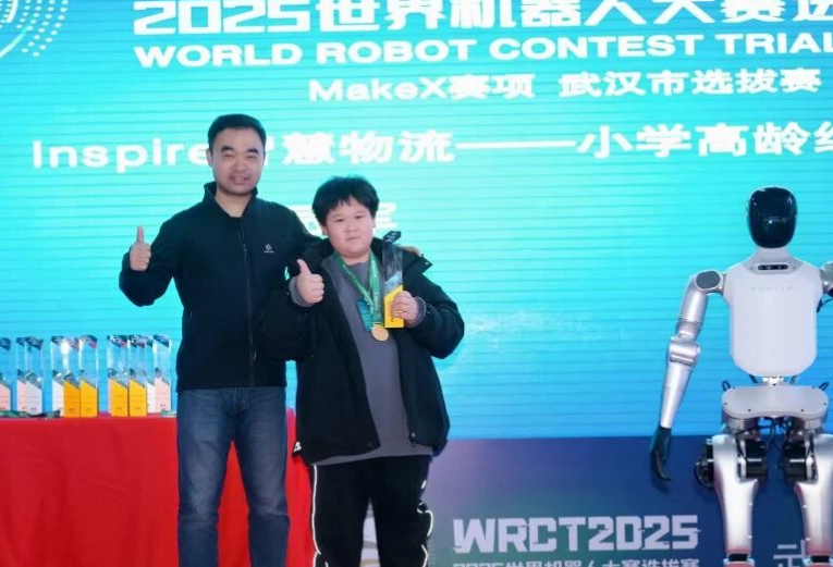 选拔赛上,武汉市汉阳区二桥中学初二学生熊允航和宜昌市伍家岗区岳湾路小学六年级学生刘锐彬在数智先锋赛项个人排位赛中名列前茅。按照规则,两人自愿组队进入联盟对抗赛。经过通力协作,这对好拍档夺得该赛项冠军,双双晋级即将于江苏省无锡市举行的2025世界机器人大赛总决赛。