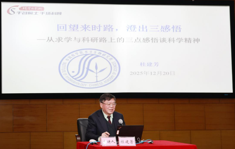 市科协网讯 12月20日,在武汉市第十二届中小学生科普征文颁奖暨第十三届征文启动仪式现场,鱼类遗传育种学家、中国科学院院士桂建芳讲述了“回望来时路,澄出三感悟——从求学与科研路上的三点感悟谈科学精神”的精彩故事,科学的种子在孩子心间悄然播撒。