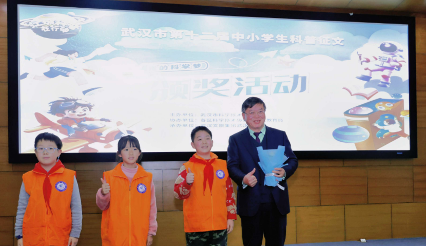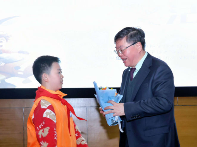 市科协网讯 “桂爷爷,谢谢您的谆谆教诲,也谢谢您带我们走进奇妙的鱼类世界!”12月20日,武汉科学技术馆科普报告厅内掌声尚未散尽,三位武汉科技小记者手捧鲜花,快步走向刚刚结束宣讲的中国科学院院士桂建芳。在武汉市第十二届中小学生科普征文颁奖暨第十三届启动仪式的重磅环节后,三位怀揣敬意与好奇的科技小记者共同登台献花,用最纯真的方式,向这位深耕科研四十载的科学家致敬。