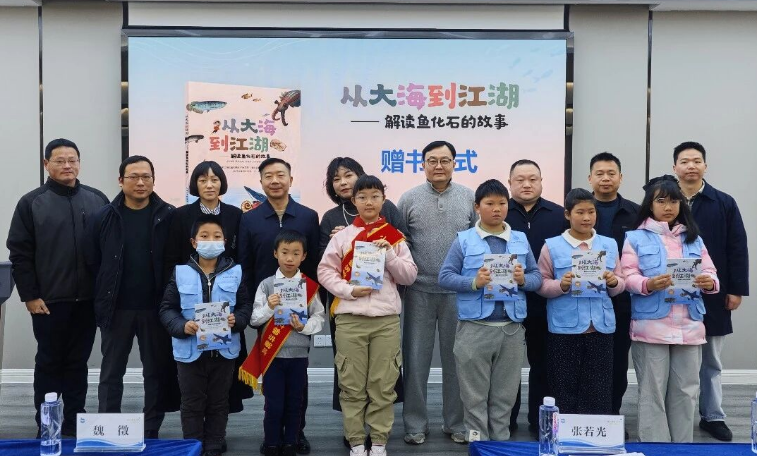 市科协网讯 12月27日,《从大海到江湖——解读鱼化石的故事》新书发布会暨2025年江城科普智慧行活动在湖北地质博物馆隆重举行。武汉市科协党组成员、副主席张若光,湖北省地质科学研究院党委书记、院长杨波涌,湖北科学技术出版社副社长向冰、省地质局科技处副处长魏徵、江汉区科协主席郑瑢等嘉宾齐聚现场,以鱼化石为媒介,开启一场融合地质科学探索与科普传播创新的科普交流活动,为江城公众带来沉浸式的地质科普体验。