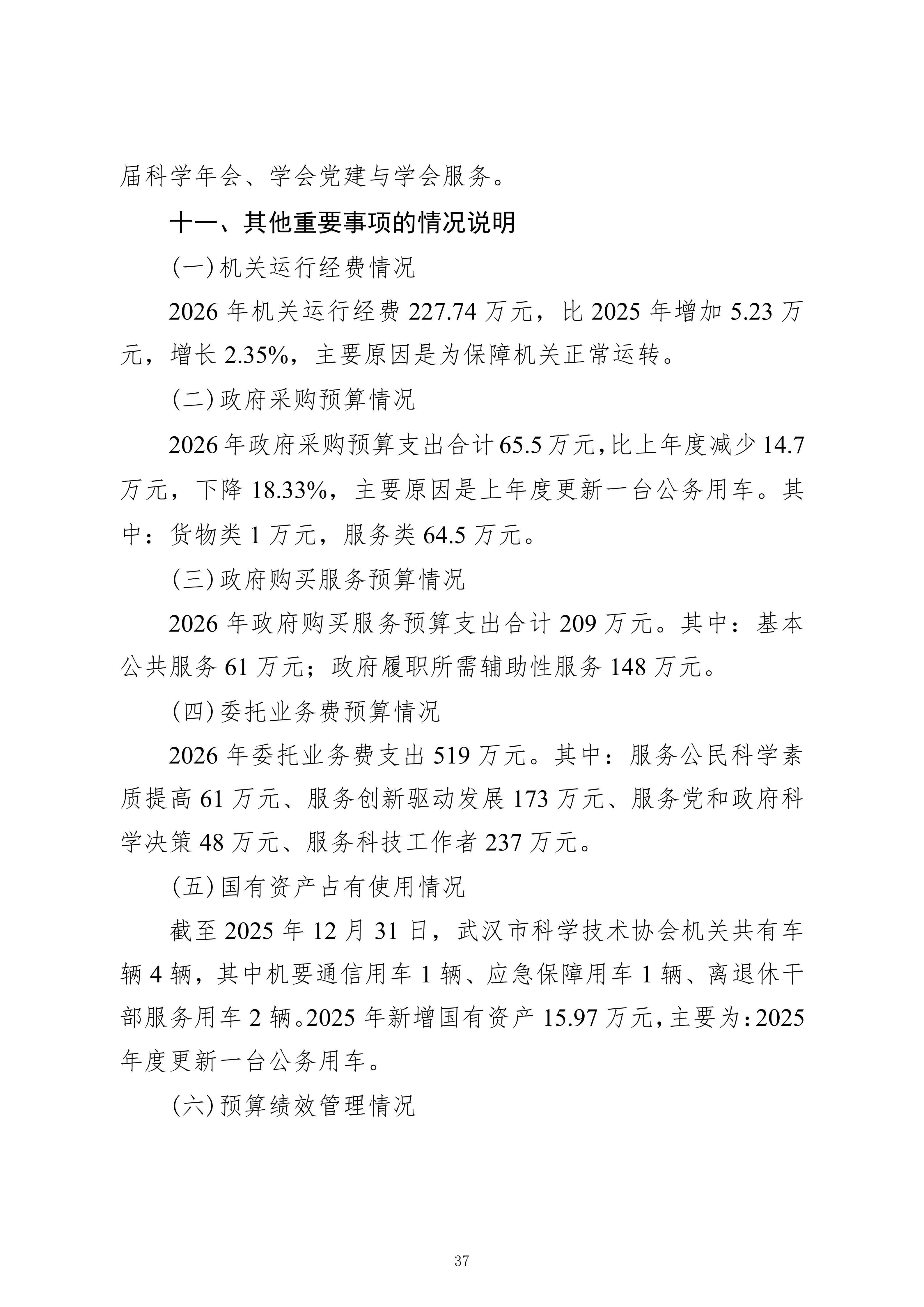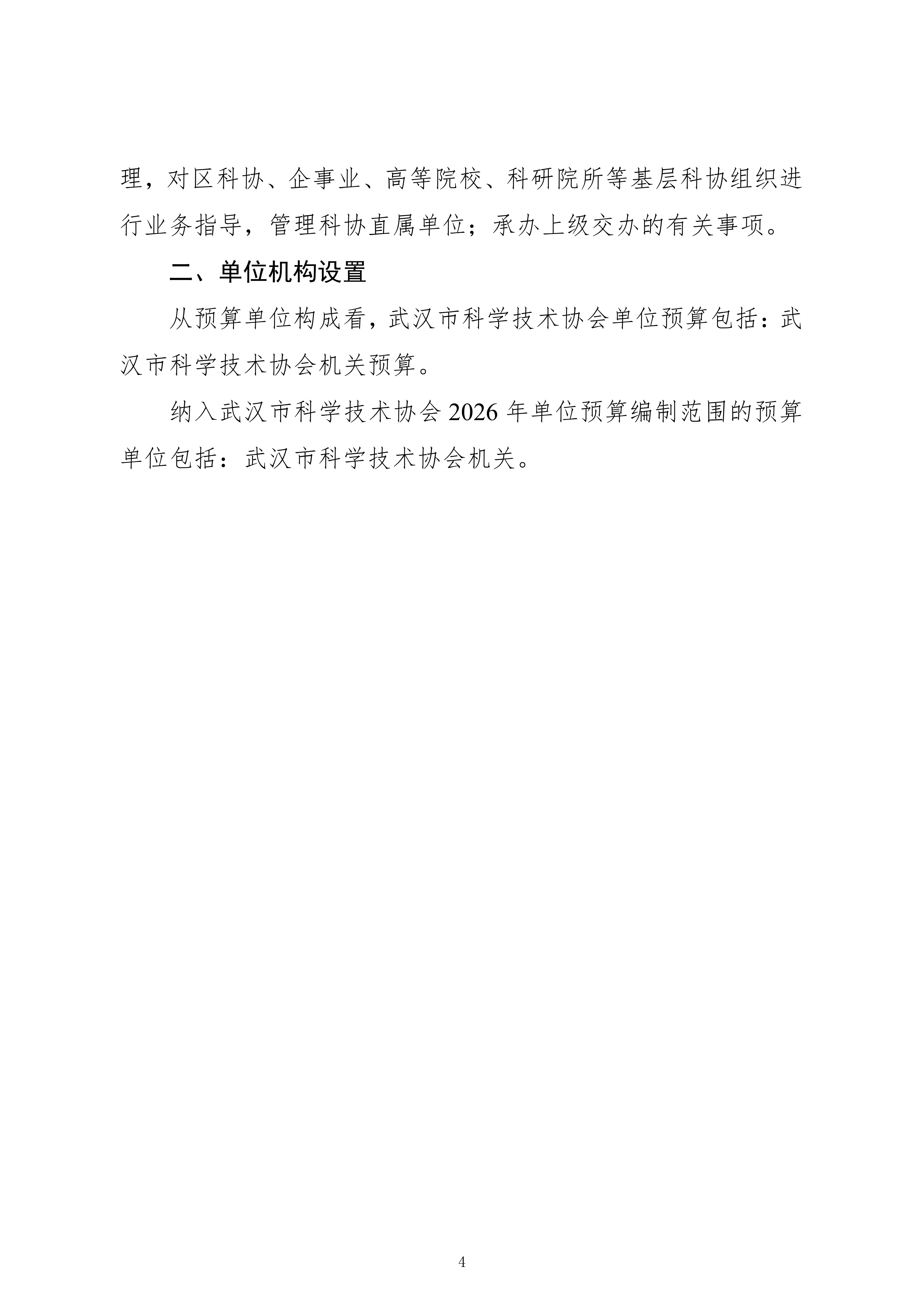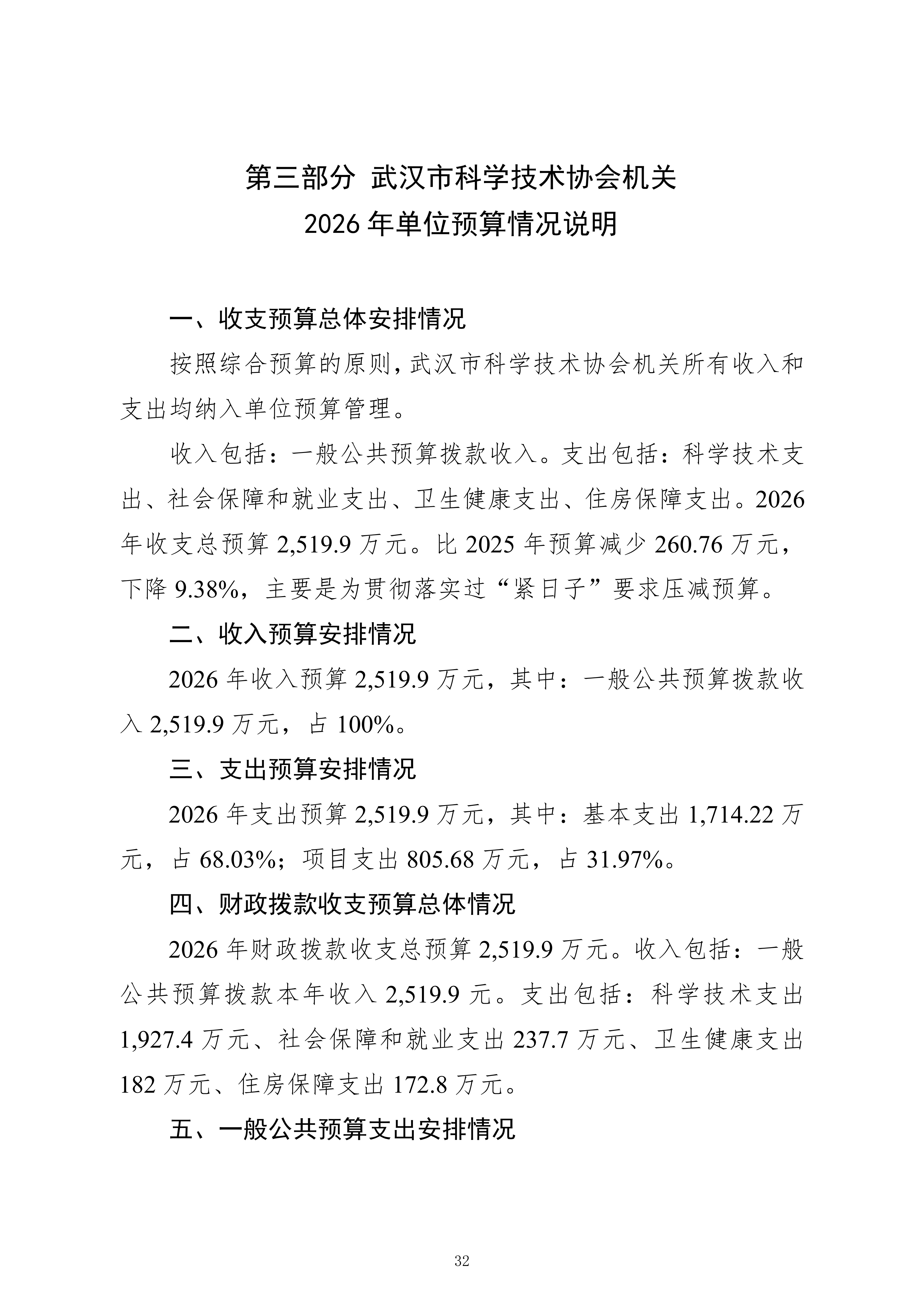 武汉市科学技术协会机关2026年单位预算