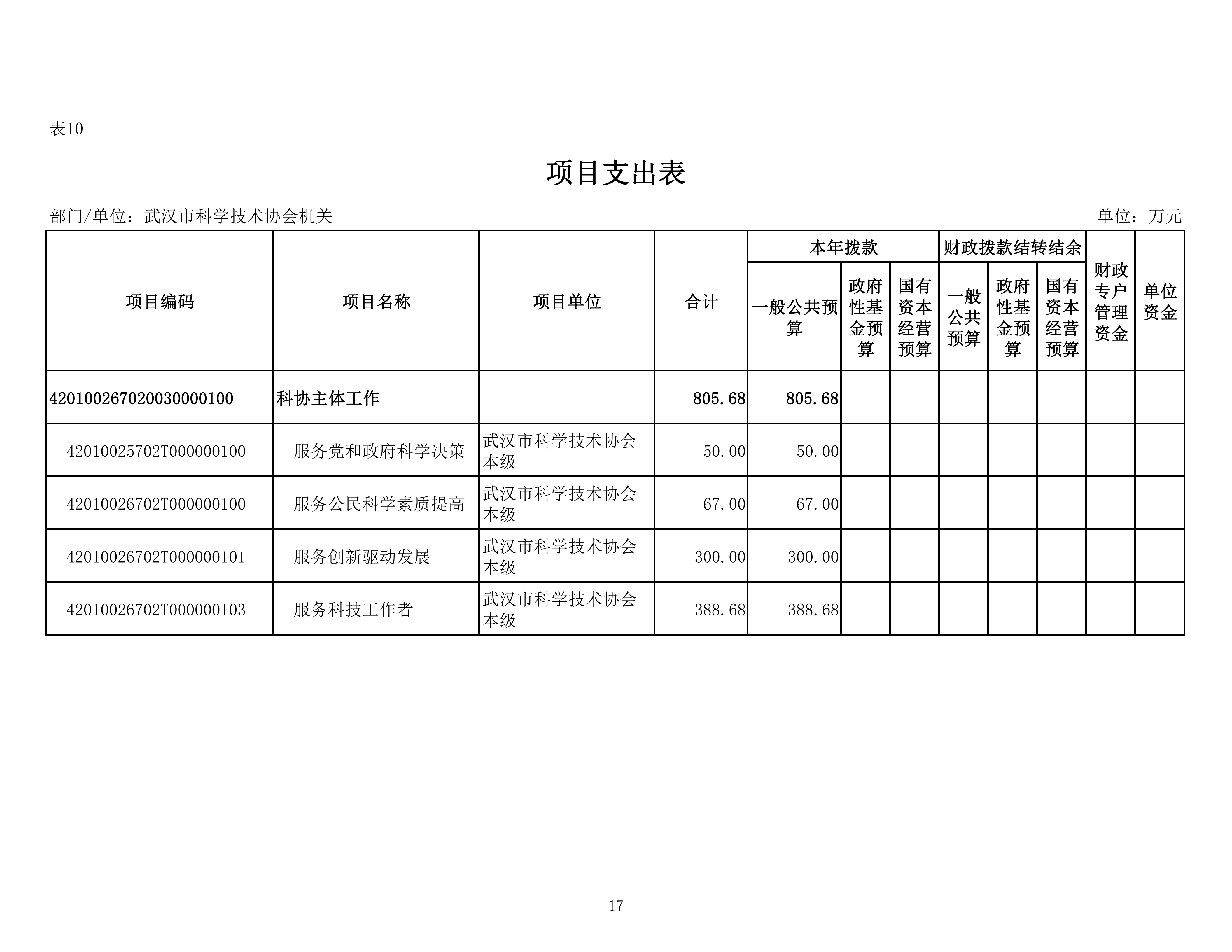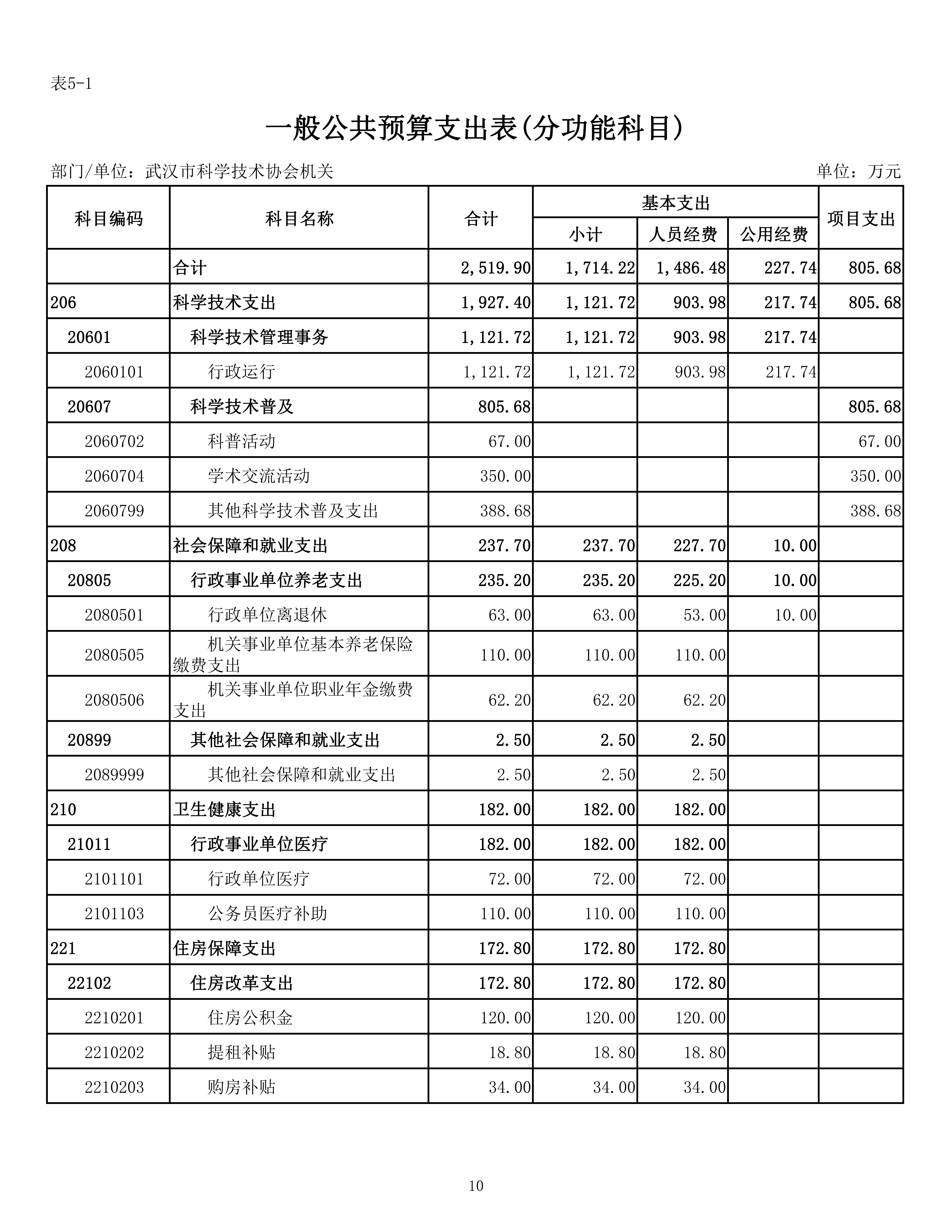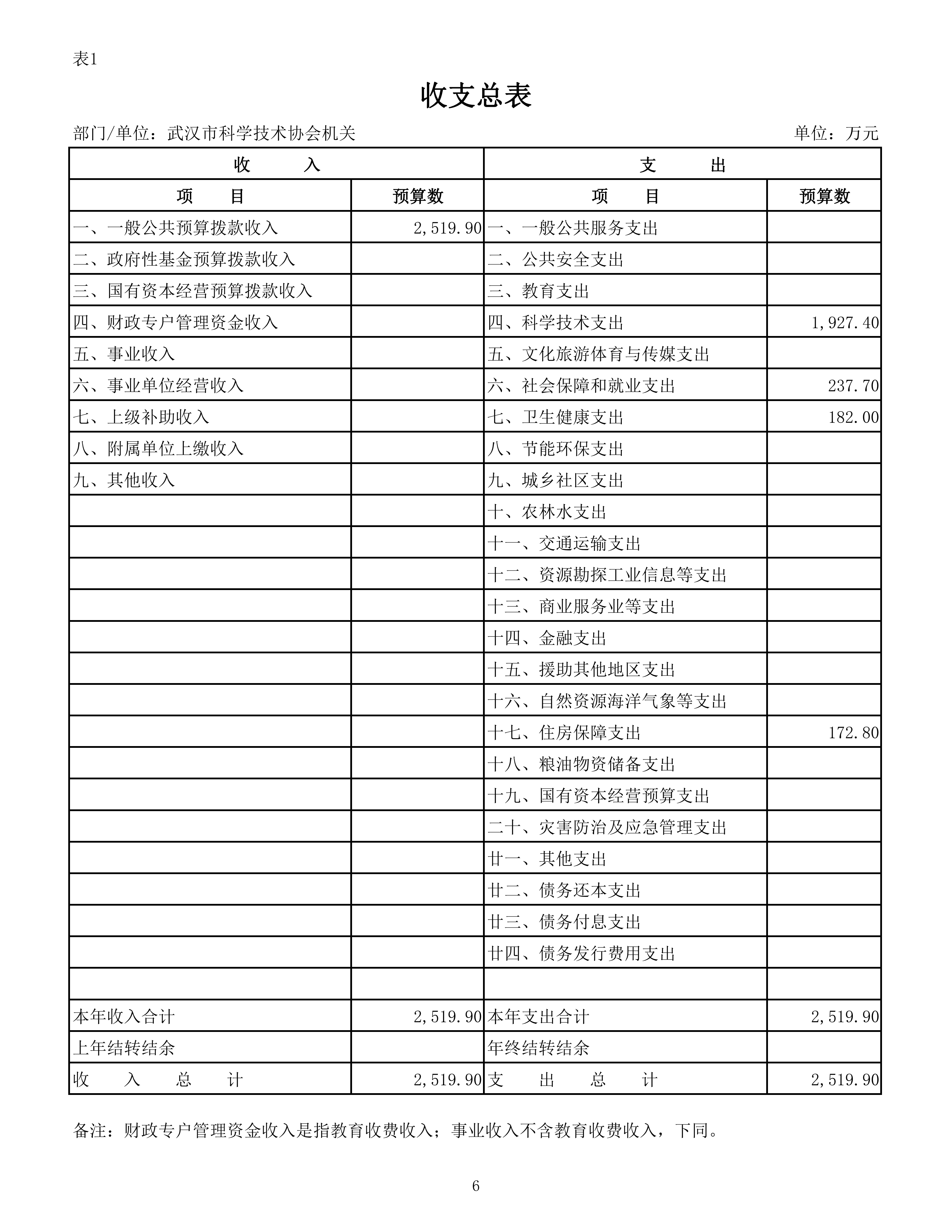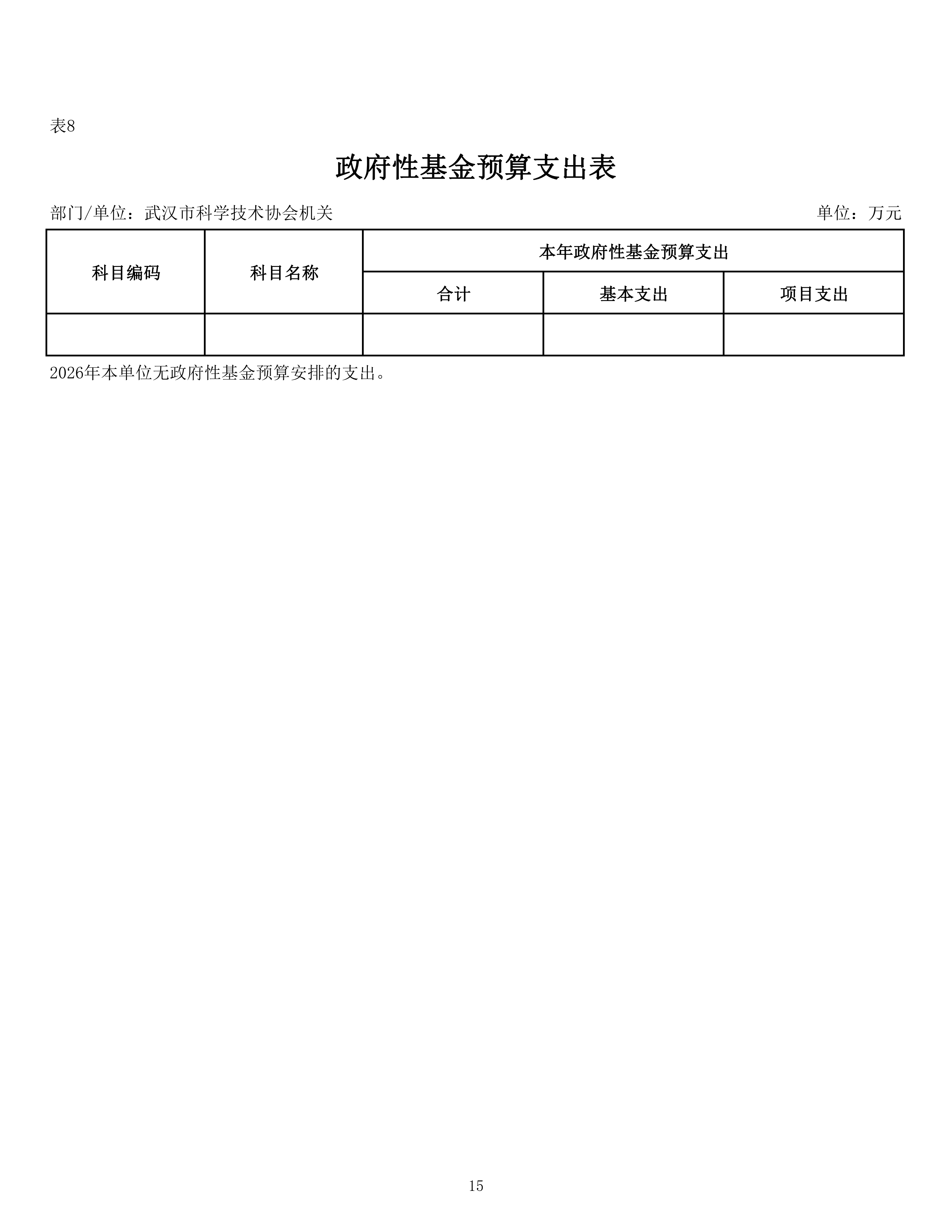 武汉市科学技术协会机关2026年单位预算