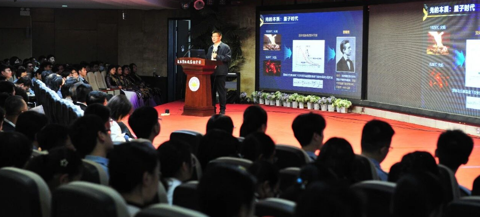 活动现场,徐红星院士以“光启万象,‘量’剑未来——科学家精神的时代回响”为题开展专题讲座。徐红星院士长期深耕等离激元光子学、分子光谱与纳米光学领域,是该方向的顶尖学者。他以专业又通俗易懂的语言,深入浅出地阐释微观世界的科学奥秘,解读量子科技前沿进展;同时结合自身科研经历,生动诠释科学家精神的时代内涵,引导青少年真切感受科学研究的严谨性与探索性,深刻理解科研工作者的家国情怀与使命担当。