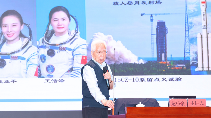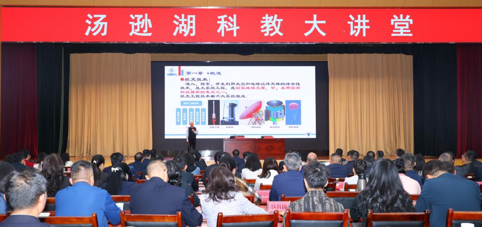 市科协网讯 “火箭的运载能力有多大,航天的舞台就有多大。”4月17日,江夏区委理论学习中心组报告会暨汤逊湖科教大讲堂在区委会议中心举办。我国航天事业泰斗、火箭系列总设计师龙乐豪研究员应邀作《中国火箭与航天》专题指导报告。89 岁高龄的龙乐豪研究员立足宏观视角,系统梳理中国航天发展历程,用权威数据与生动讲述,带来一场兼具科技性、前瞻性与感染力的专题辅导。