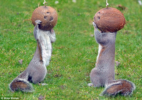 国际在线3月8日报道 据英国《每日邮报》3月8日报道,日前在英国汉普郡一户人家的花园内,一对贪吃的小松鼠脑袋被卡在椰子壳内。这一幕被这户人家的主人拍摄下来,其场面令人忍俊不禁。