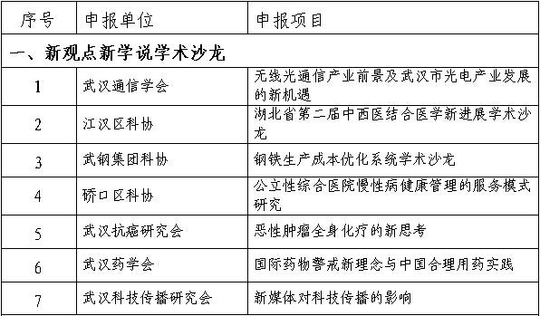 2015年6月12日-13日,武汉市科协组织召开2015年学术交流平台项目评审会,现将入选项目予以公示。公示期为2015年6月15日至6月21日,共计7天。公示期间,如有单位或个人对此公示结果有异议,可在公示期内向市科协学会部反映,并提供必要的书面证明材料和个人身份证明。