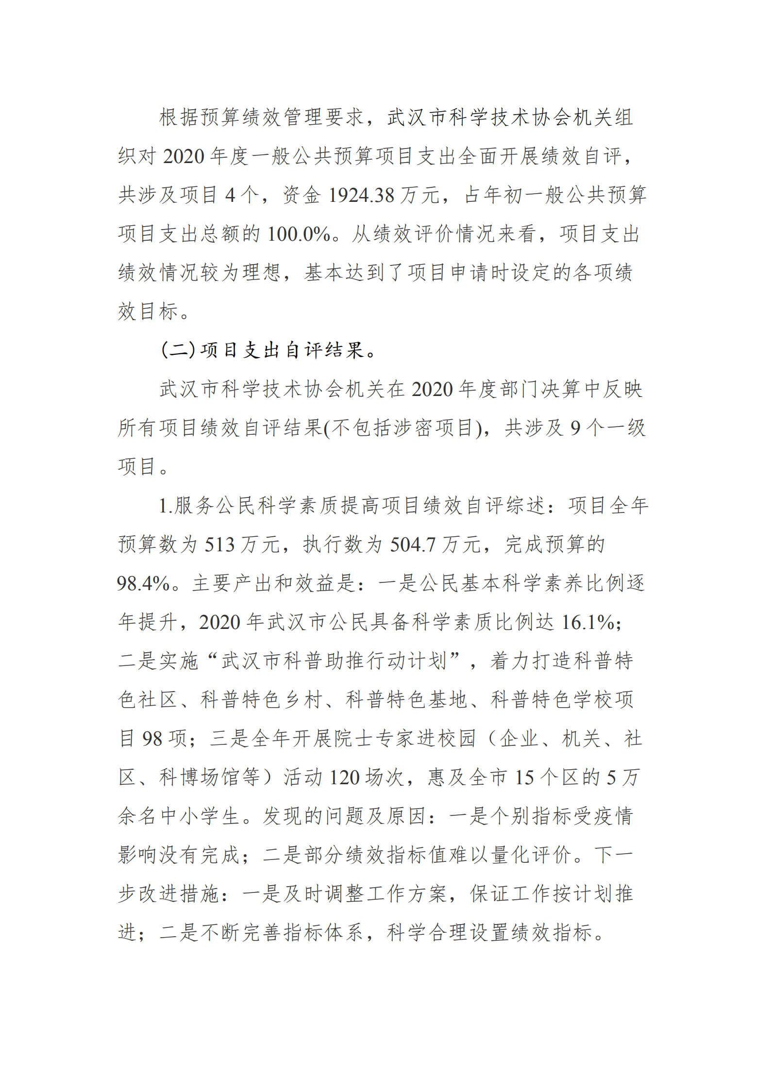 附件:2020年度武汉市科学技术协会机关项目自评表.pdf