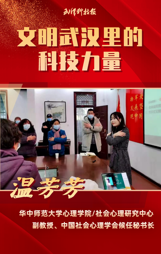 “文明城市里的人应该身心健康,人格健全;具有自尊自信、理性平和、积极向上的良好社会心态。作为社会心理学人和科技工作者,我们在文明城市建设中具有义不容辞的责任与使命。”温芳芳表示,自2013年8月以来,在武汉市委宣传部和百步亭社区的大力支持下,华中师范大学社会心理研究中心团队在佐斌教授的带领下,开启了华中师范大学百步亭“温馨行动”社会心理志愿服务。在8年的坚持探索中,针对不同社会人群开展心理服务与教育引导,面向群体,采用“心理+”模式与多种机构和单位合作开展,采用培训、讲座、咨询、团辅、访谈、调研等多种方法有针对性进行多次服务,让服务对象可以在认知、情感、家庭和社会等多方面的幸福感得到提升。值得一提的是,新冠疫情暴发之后,由湖北省妇联携手华中师范大学和湖北省心理学会联合推出了我们社会心理志愿服务团队撰写的“温馨行动·抗疫心文”系列推文100余篇,在省妇联“湖北e家庭”和“印象社会心理”微信公众号连续发布86期,为民众的心理调适与重建贡献了一份力量。