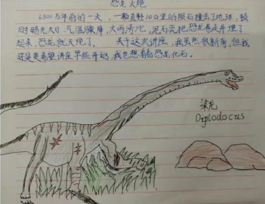 讲座结束后,同学们意犹未尽,更是主动向徐教授提问,还向徐教授展示了自己搜集了大量资料后亲手完成的预习笔记,关于恐龙时代的手抄报,徐教授表示深受感动。