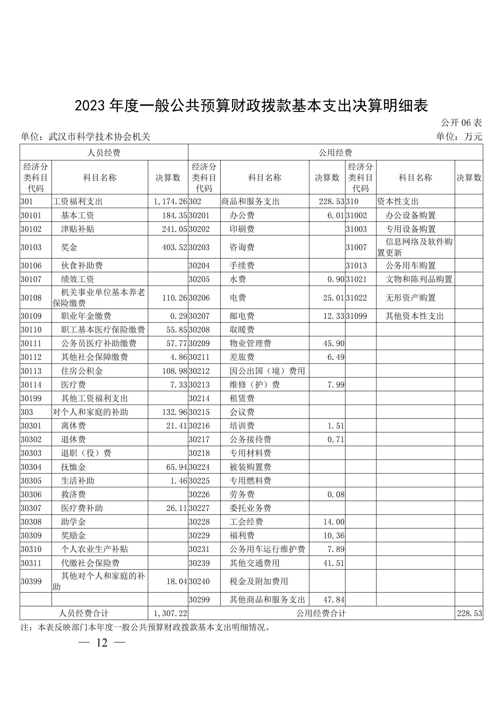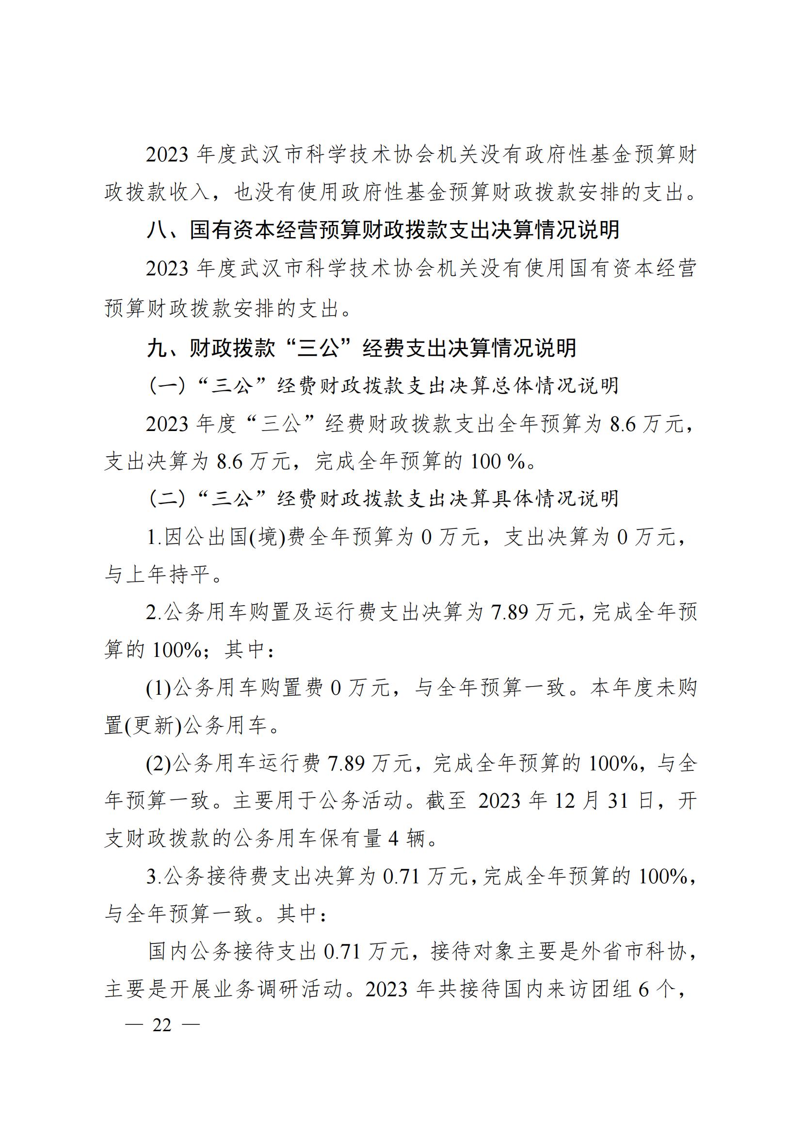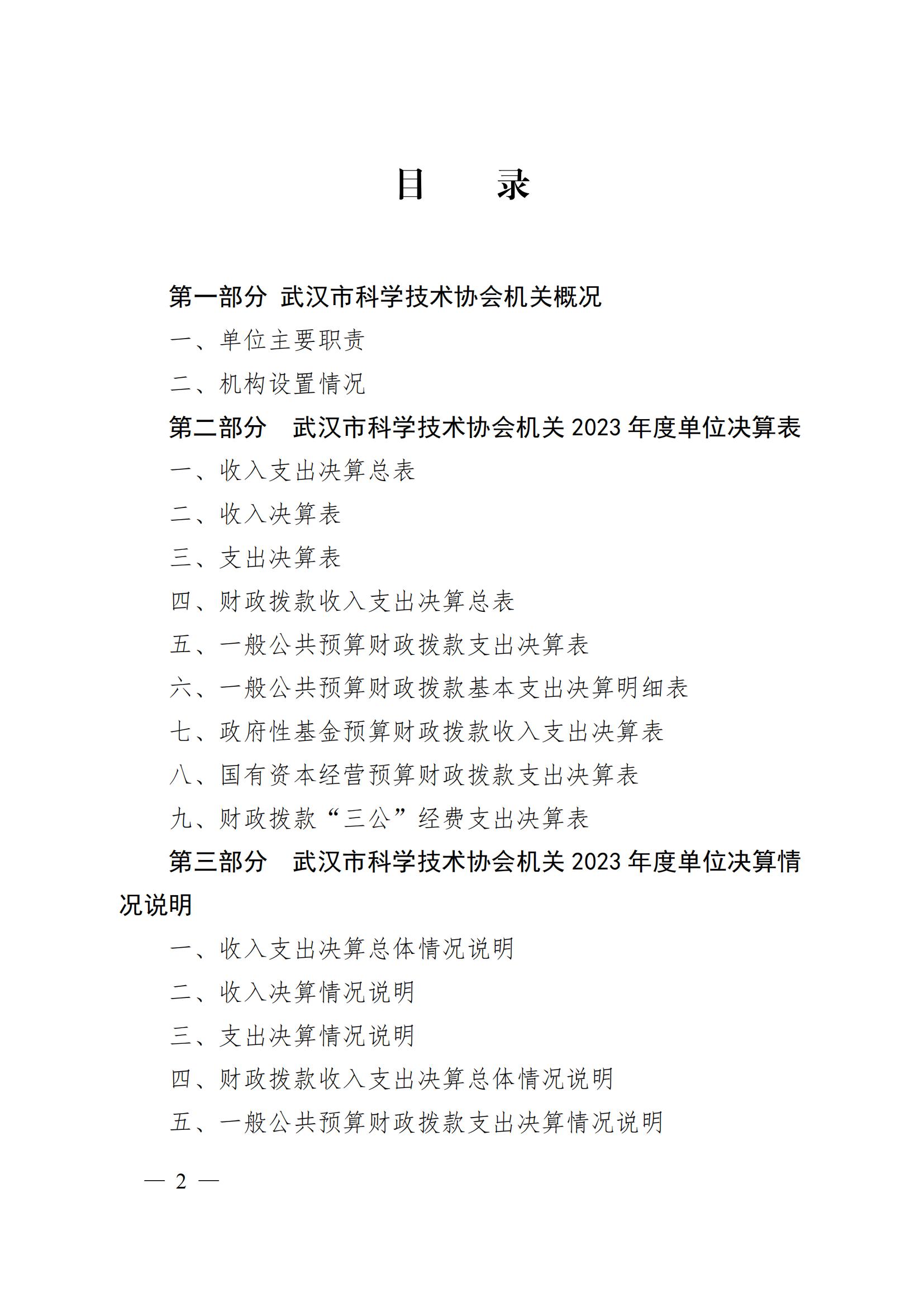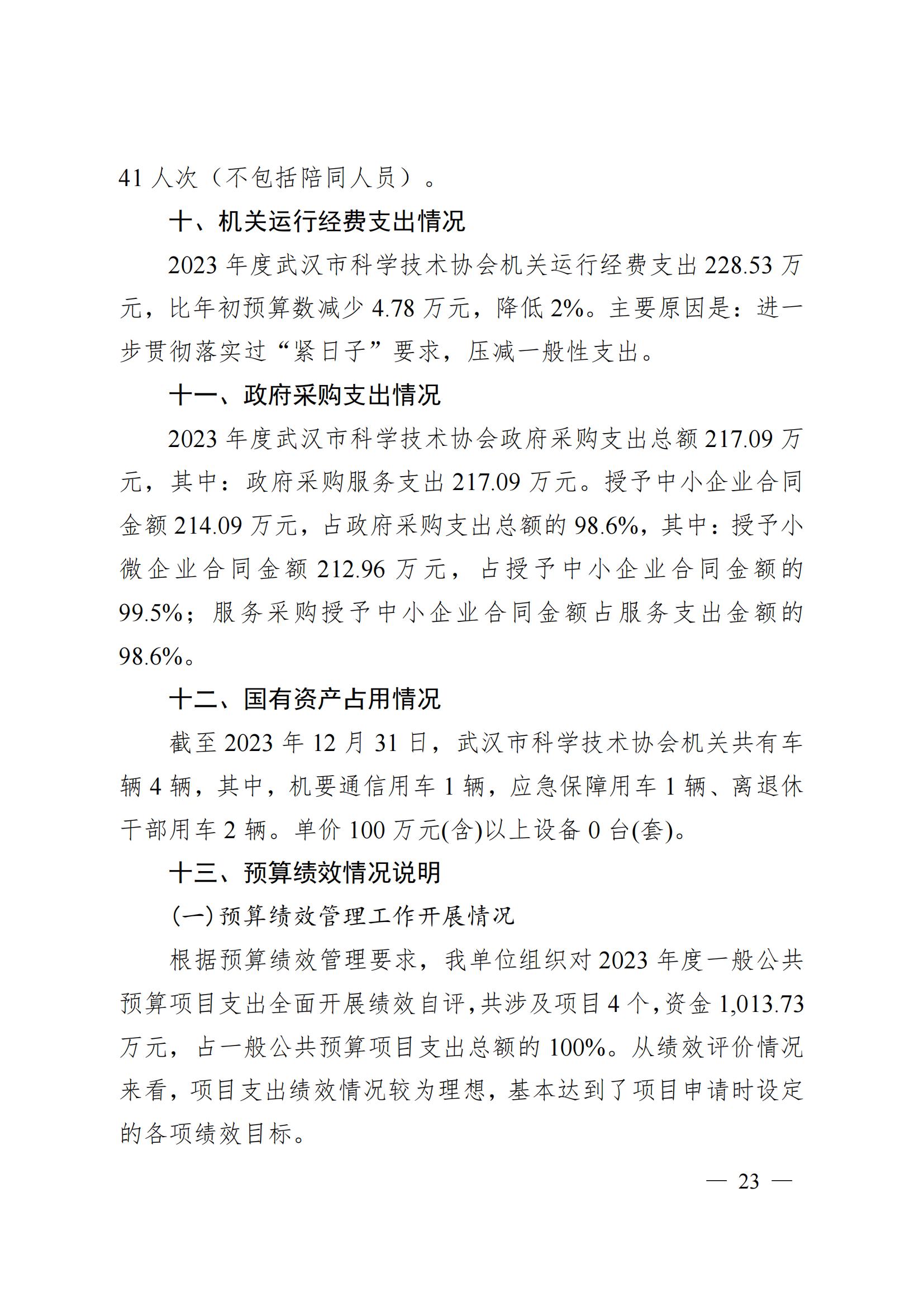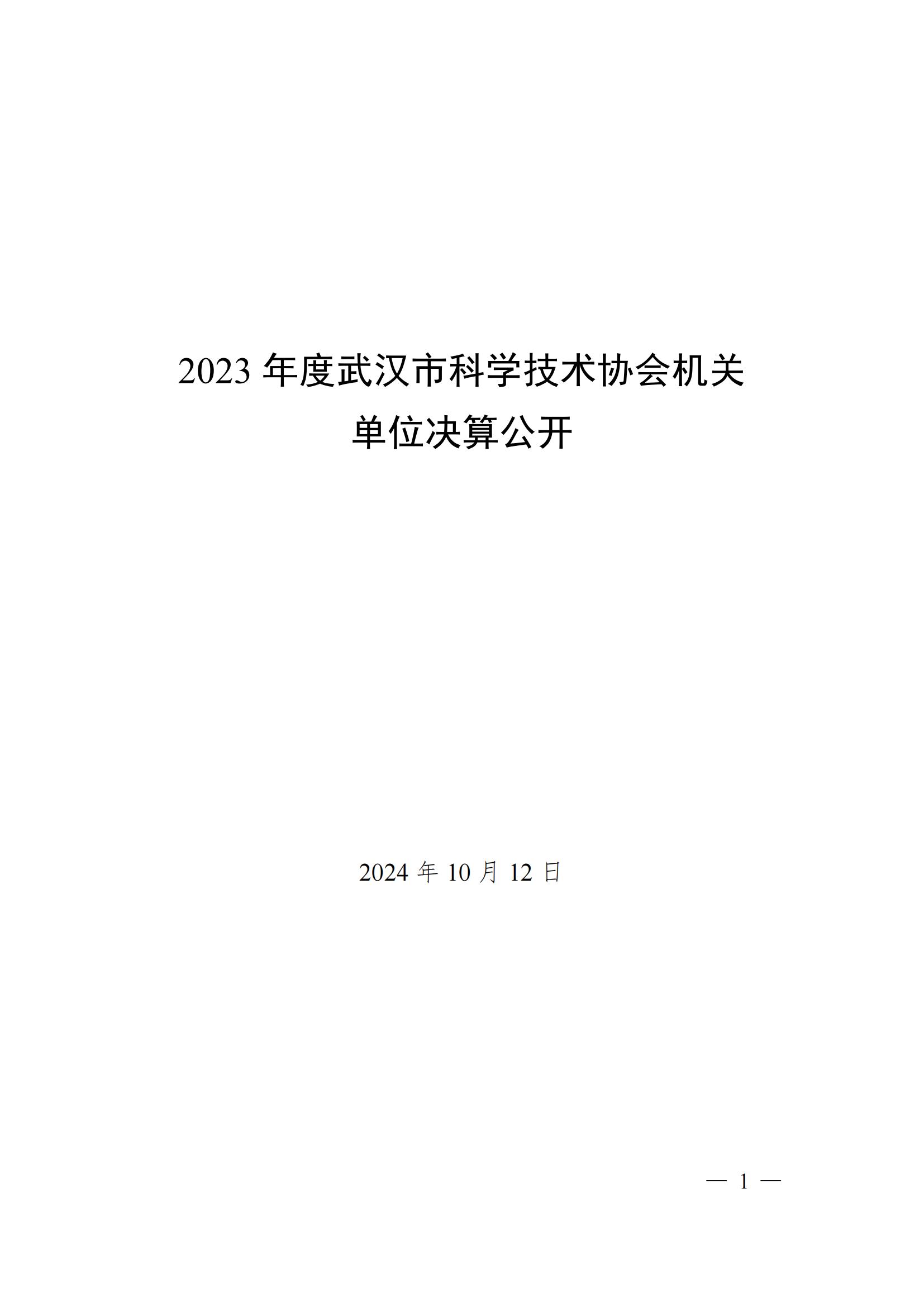 2023 年度武汉市科学技术协会机关单位决算公开