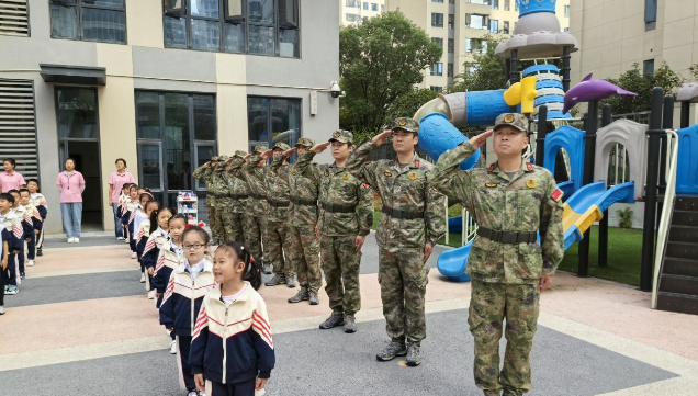 “因为心中有信念,面对艰难的时刻我们从不退缩,希望你们长大后也能勇敢坚强,为祖国贡献力量。”退役军人吴守东上台分享军旅故事,字里行间蕴含着浓厚的军人情结,展现使命担当。活动最后,幼儿园小朋友们带来合唱歌曲《歌唱祖国》,表达对祖国的热爱与祝福。