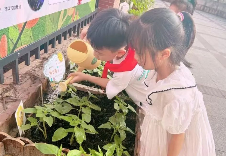 启动仪式结束后,同学们有序来到⼭鹰⼩学“⼀⽶菜园”,化⾝“⼩⼩太空种植员”,种下了太空种⼦,⼀颗颗种⼦承载着梦想与希望,期待新的⼀年,这些种⼦在同学们的精⼼呵护与培育下,开出航天之花,结出科技之果。