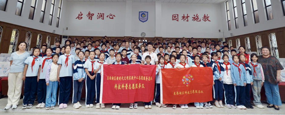 “同学们,你们知道吗?在贵州的深山里,有一口‘大锅’——它直径500米,能装下20多个我们这样的校园。那是‘中国天眼’,是我们倾听宇宙心跳的耳朵。”9月19日下午,在东西湖区金银潭小学悦行楼报告厅内,华中科技大学机械科学与工程学院博士研究生滕钺以《追“星星”的人 传承“科学家精神”,投身祖国需要的地方》为题,用孩子们听得懂的语言,将“中国天眼”FAST和南仁东的故事娓娓道来,为200名小学生打开了一扇通往科学与精神世界的窗口。