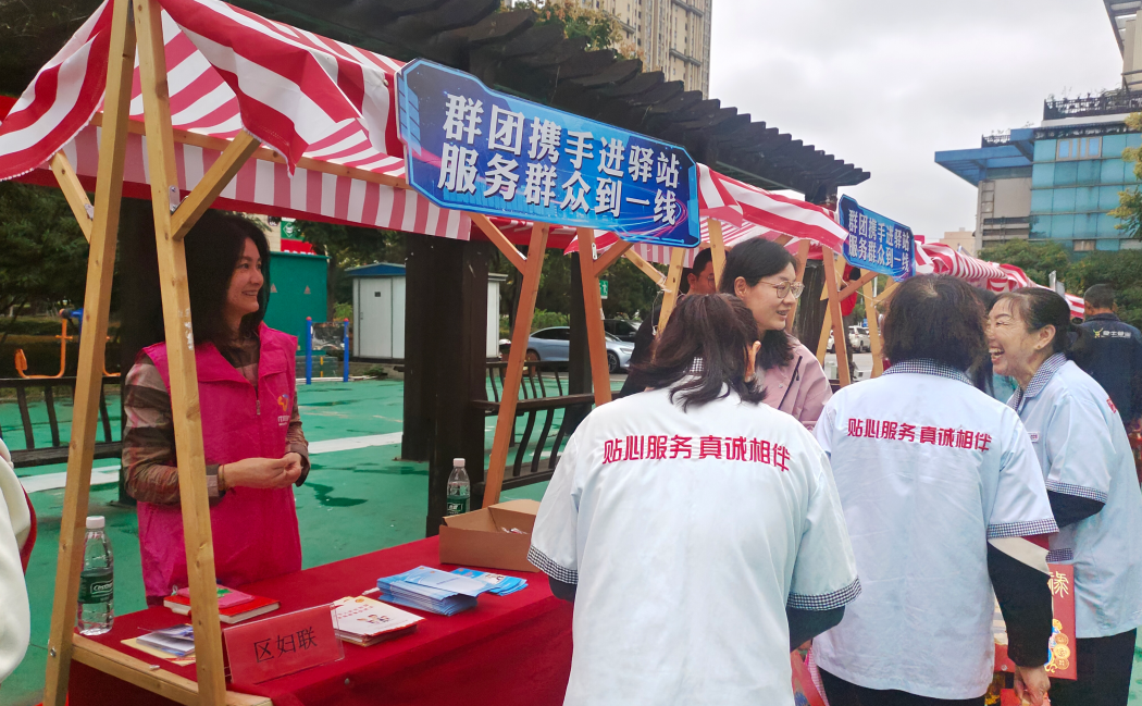 为凝聚群团组织工作合力,精准对接新就业形态劳动者多元化需求,9月25日上午,东西湖区委社会工作部、区总工会、区科协、团区委、区妇联、区残联、区红十字会、区文明办、区城管执法局、区应急管理局等12家单位,联合长墩堤社区工会,在长墩堤社区户外职工爱心驿站开展“群团携手进驿站,服务群众到一线暨全国科普月”活动。活动聚焦快递小哥、外卖配送员、网络主播、网约车司机、环卫工人等群体,将暖心服务与保障送到劳动者身边。