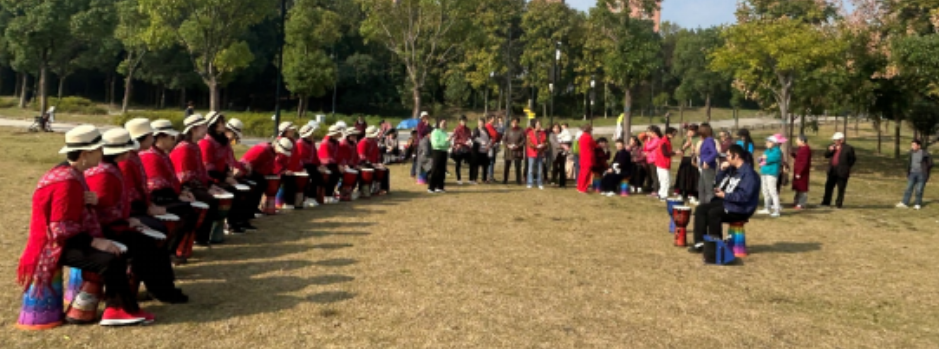 活动分为才艺展演、趣味运动与科普体验三大板块,社区工作人员提前筹备科普资源,让科普内容与节日氛围巧妙融合。在才艺展演环节,非洲鼓表演率先登场,激昂的鼓点、欢快的节奏瞬间点燃现场气氛,老人们手持鼓槌整齐敲击,展现蓬勃生命力;随后,社区合唱队以一曲《我和我的祖国》献礼重阳,悠扬歌声中,工作人员同步向现场老人发放《老年健康科普手册》,手册涵盖秋冬养生、常见疾病预防、合理用药等实用知识,将节日祝福与科普内容一同传递,充分诠释 “老有所学、老有所乐、老有所享” 的风采。