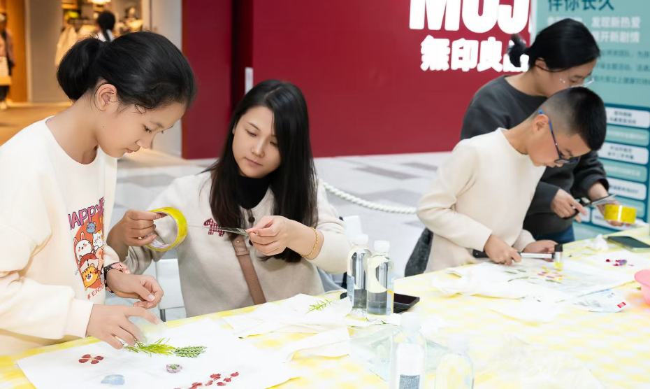 科普环节结束后,植物拓印工坊成为活动“人气打卡点”。孩子们手持安全锤,将植物纹理、花朵色彩小心翼翼地拓印在帆布包上,家长在旁协助调整角度,原本空白的帆布包瞬间变成独一无二的“自然艺术品”。“拓印帆布包比买现成的玩具更有意义,既能锻炼动手能力,又能让孩子明白美来自于大自然。”一位参与家长感慨道。活动结束后,这些拓印作品均可由家庭自行带回循环使用,进一步推动 “生物多样性保护”和“低碳生活”的“无废”理念融入家庭场景。