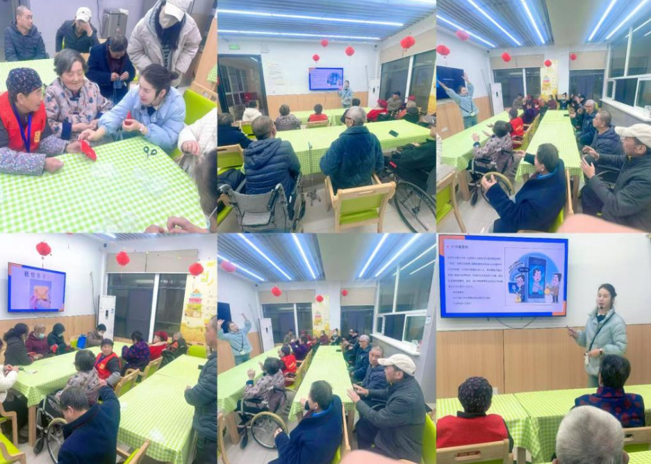 活动特别设置《你笑起来真好看》手势舞环节,通过肢体语言强化记忆点,让防骗知识在欢声笑语中入脑入心。手工编织“安心钱包”环节则将防骗理念融入传统手作,老人们一针一线编织出守护“钱袋子”的温暖纽带,实现知识传播与情感关怀的双重赋能。