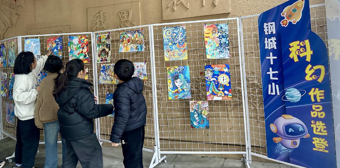 报告厅内孩子们的笑脸,也照亮了大厅里陈列的数十幅科幻画作。画中,有连接未来与现实的时空隧道,有承载梦想的飞行翅膀,还有悬浮于宇宙中的太空学校。这些稚嫩笔触勾勒出的大胆构想,与远道而来的“科幻造梦师”靓灵老师的分享形成了奇妙呼应。
