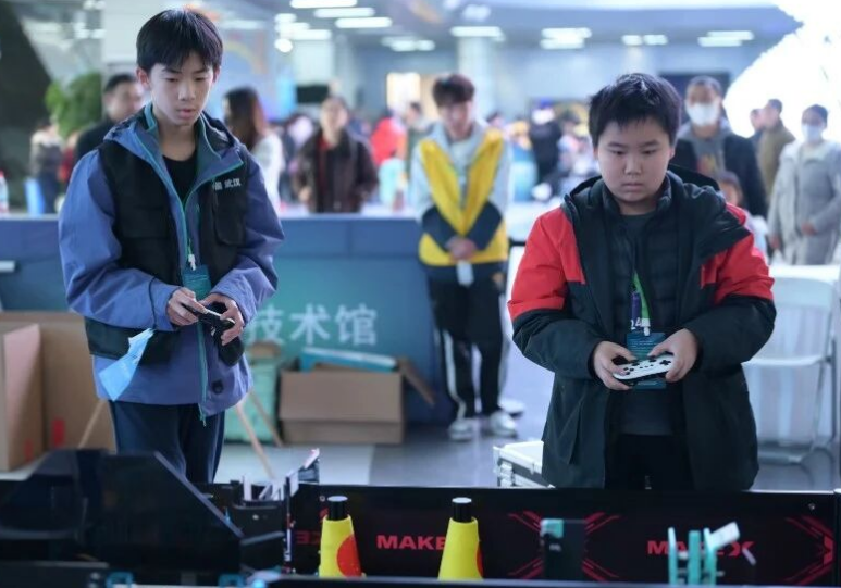 MakeX Explorer冠军联盟熊允航(左)、刘锐彬(右)比赛