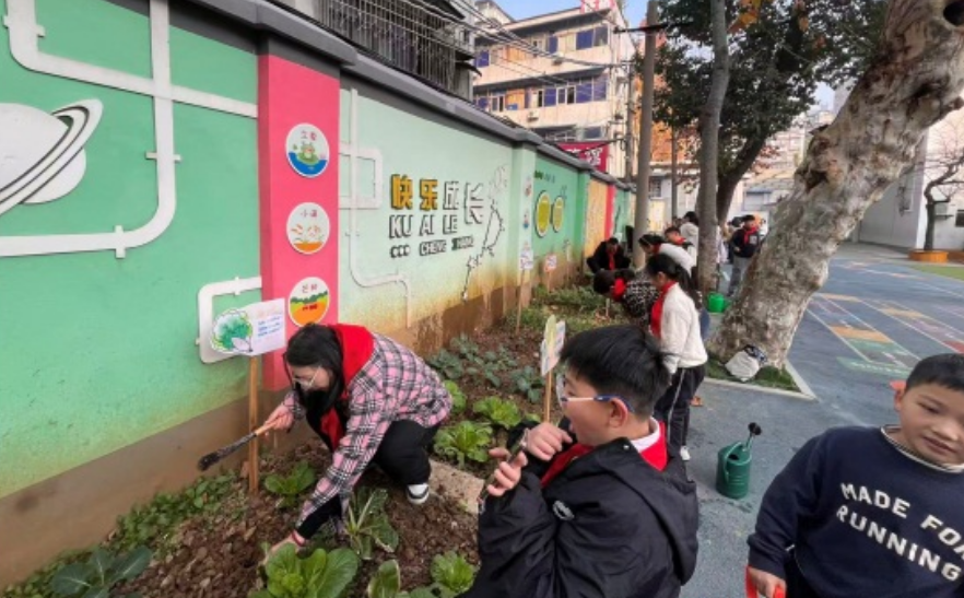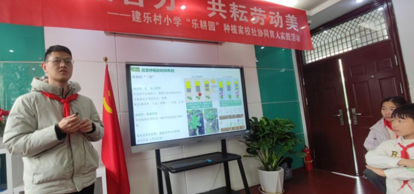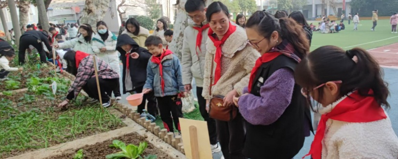 为深化劳动教育实践成效,构建学校主导、家庭参与、社区支持的协同育人新格局,2025年12月18日上午,建乐村小学携手荣华街道建国社区,特邀华中农业大学、华中师范大学专业博士团队,在校园“乐耕园”小菜地开展冬季蔬菜种植指导暨家校社协同育人交流活动,为劳动教育注入专业动能与社区活力。