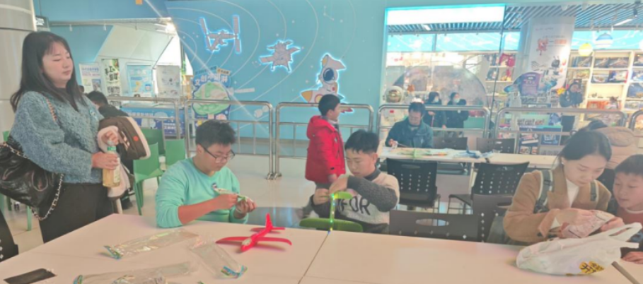活动当天开展的“筑梦航天 翼起翱翔”科学探究活动中,观众现场参与互动答题,体验飞机模型拼装,在实践中学习空气动力学知识,放飞航天梦想。