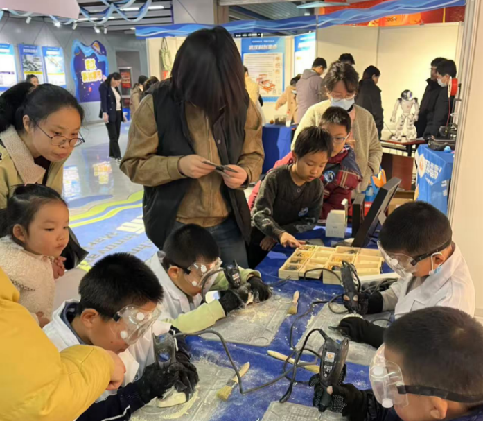 在科创集市活动现场,汇聚了本地科技企业、高校及科普工作者的创意成果,观众现场参与扎染体验、古化石清修体验、编程感知训练挑战等互动项目,近距离感受到科技创新的魅力。