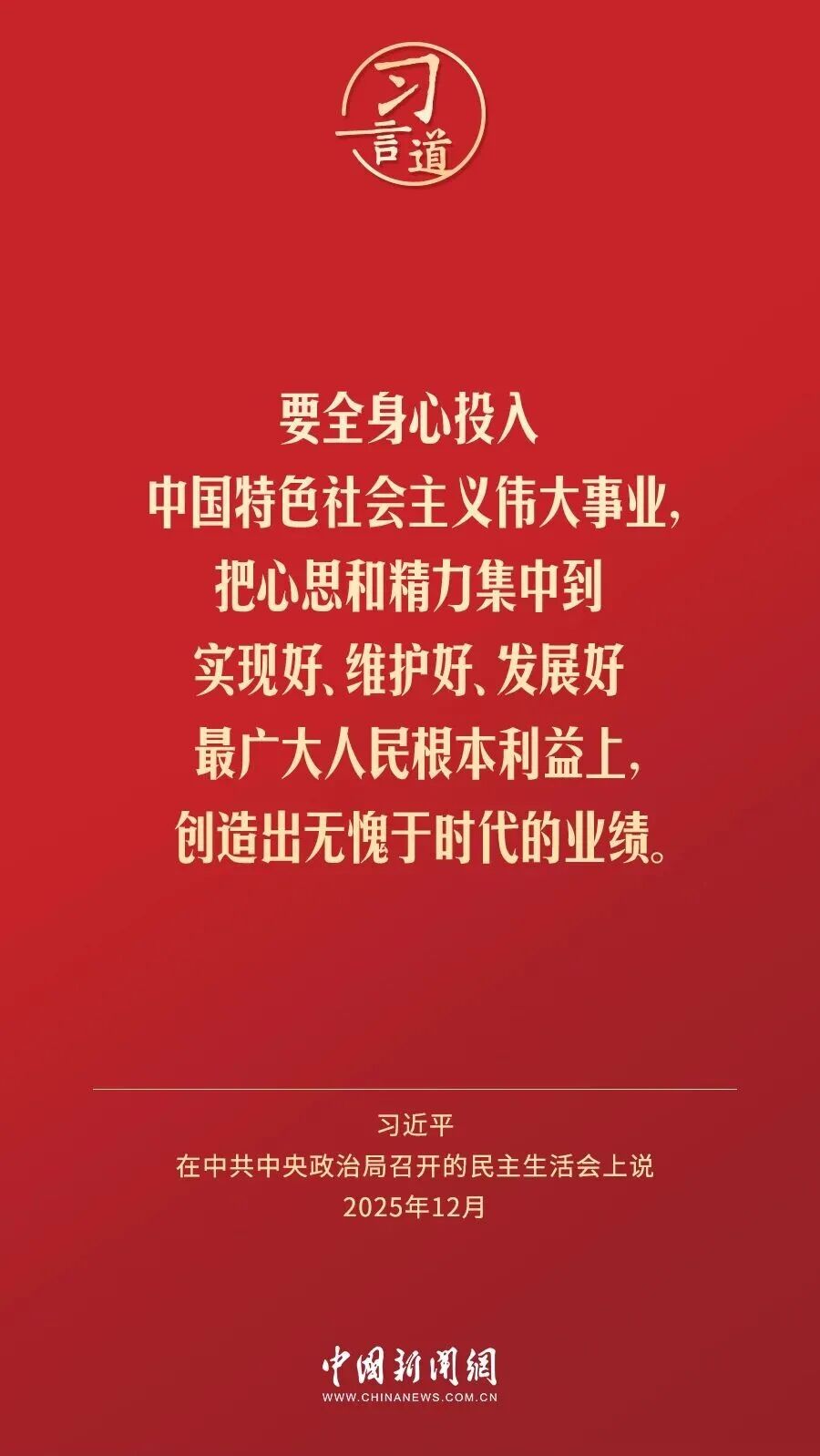 12月25日至26日,中共中央政治局召开民主生活会,中共中央总书记习近平主持会议并发表重要讲话。习近平强调——