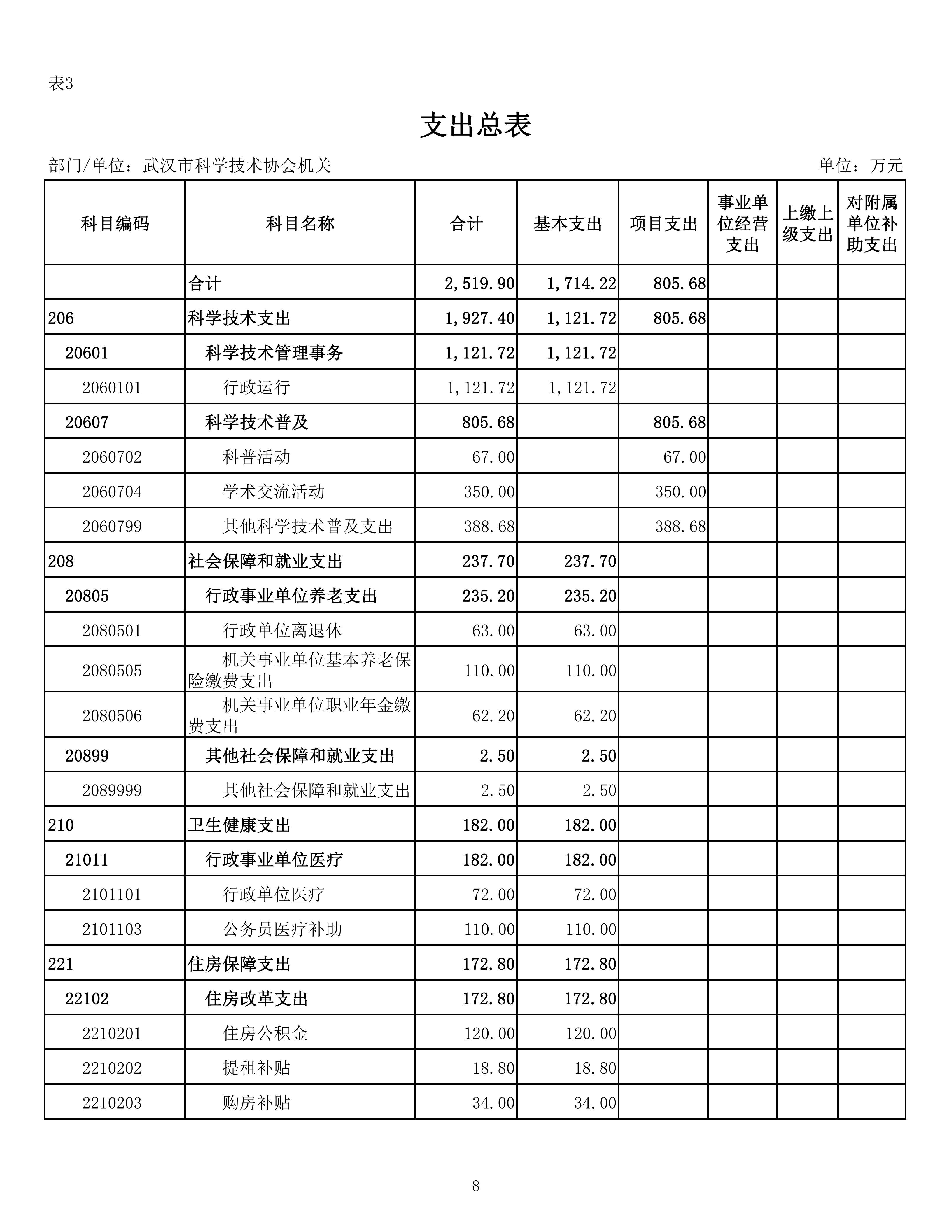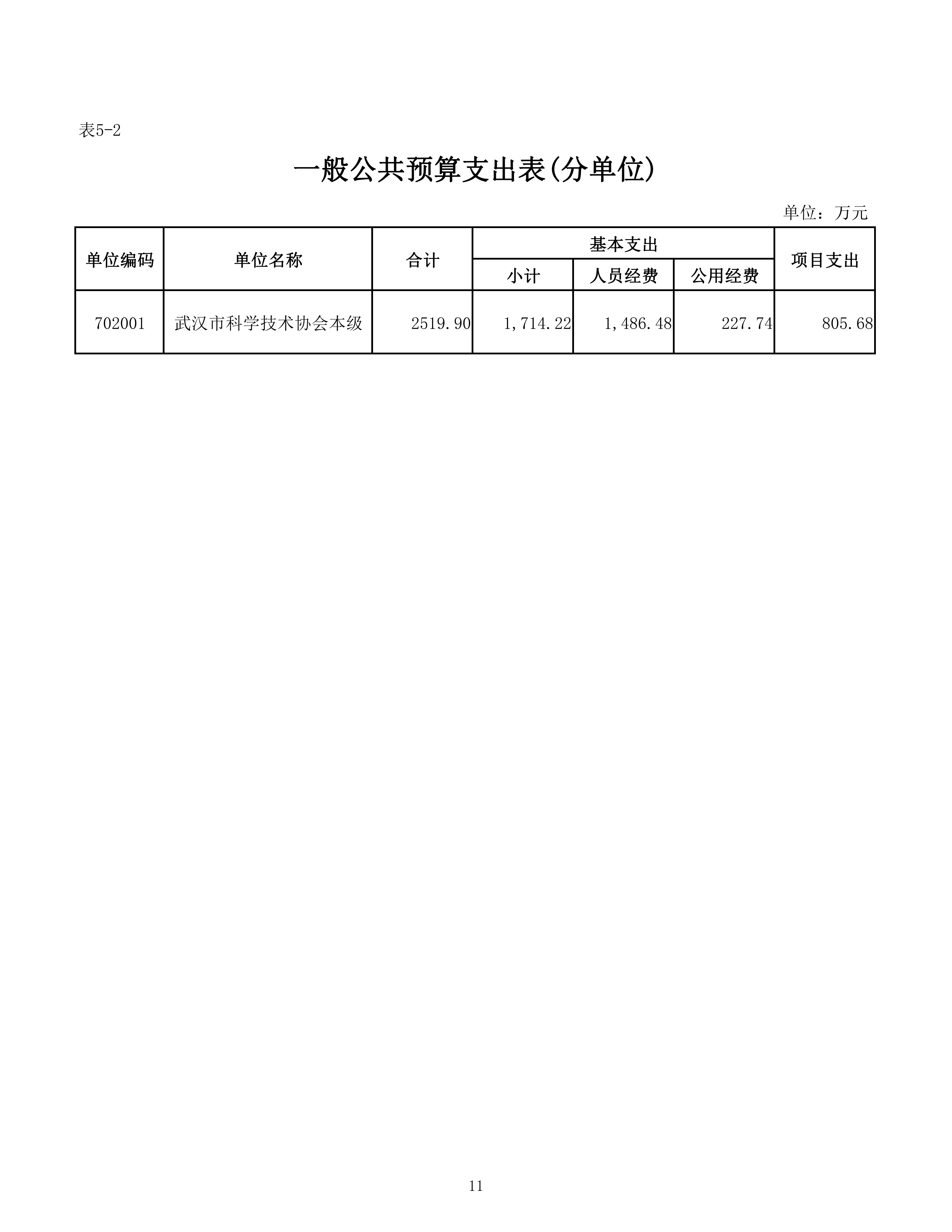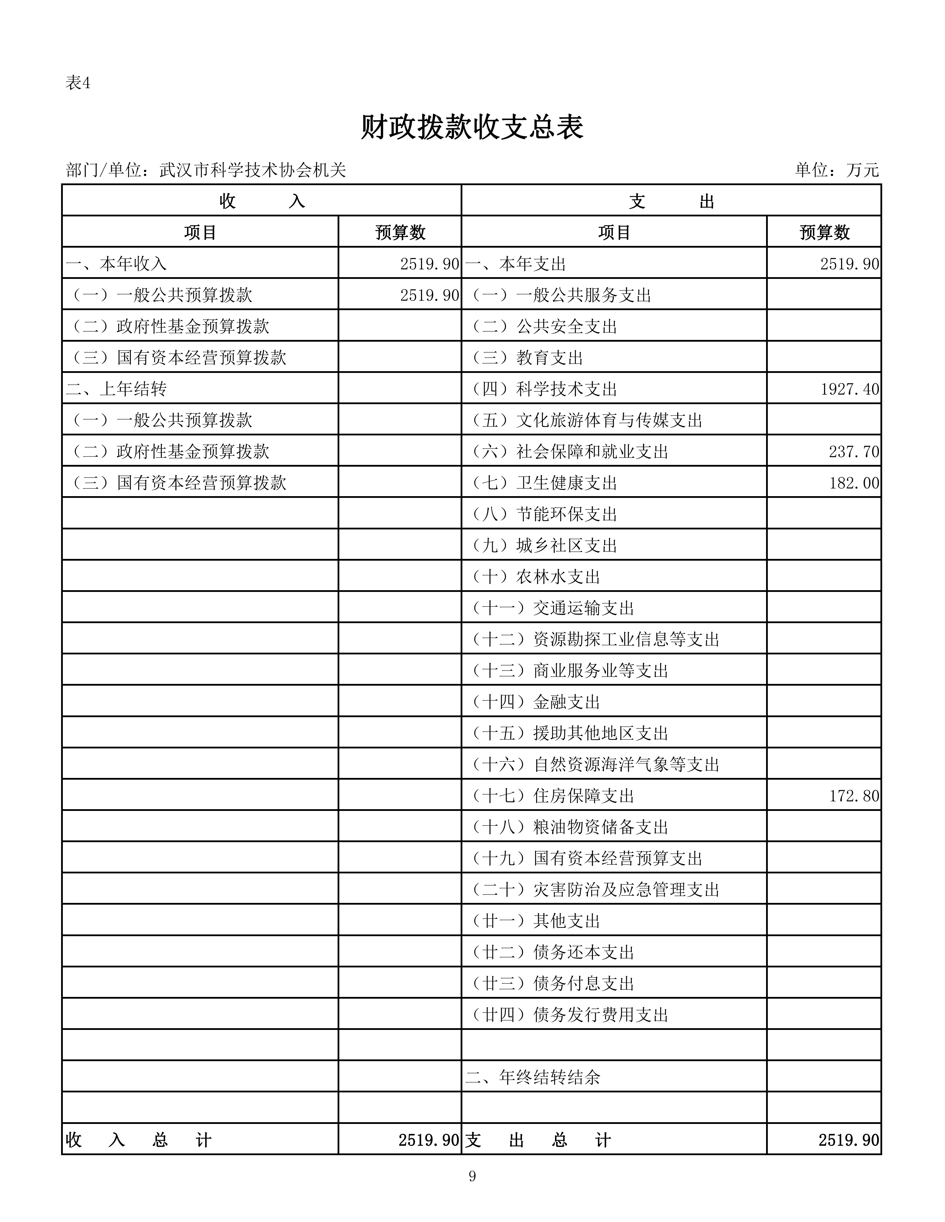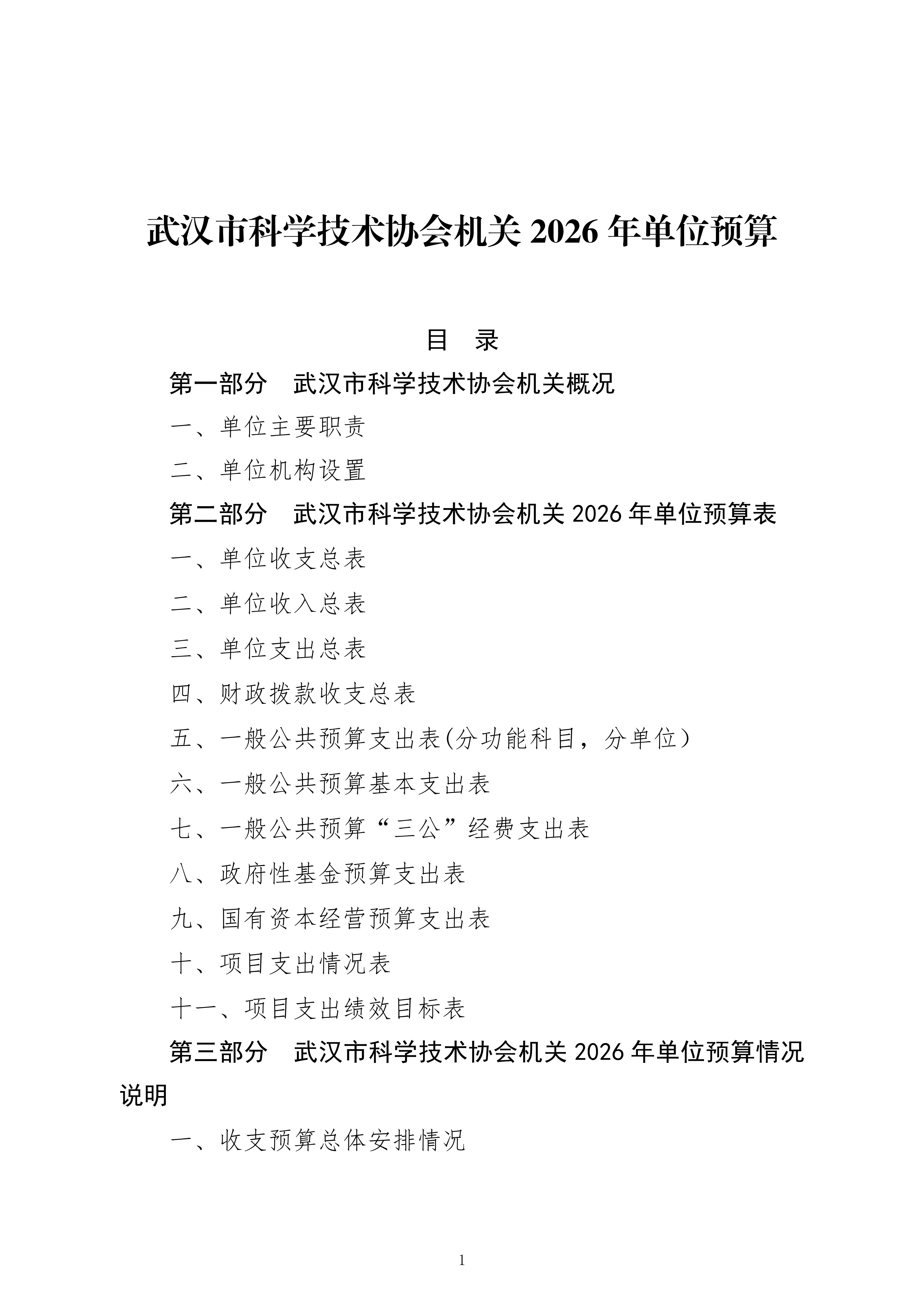 武汉市科学技术协会机关2026年单位预算