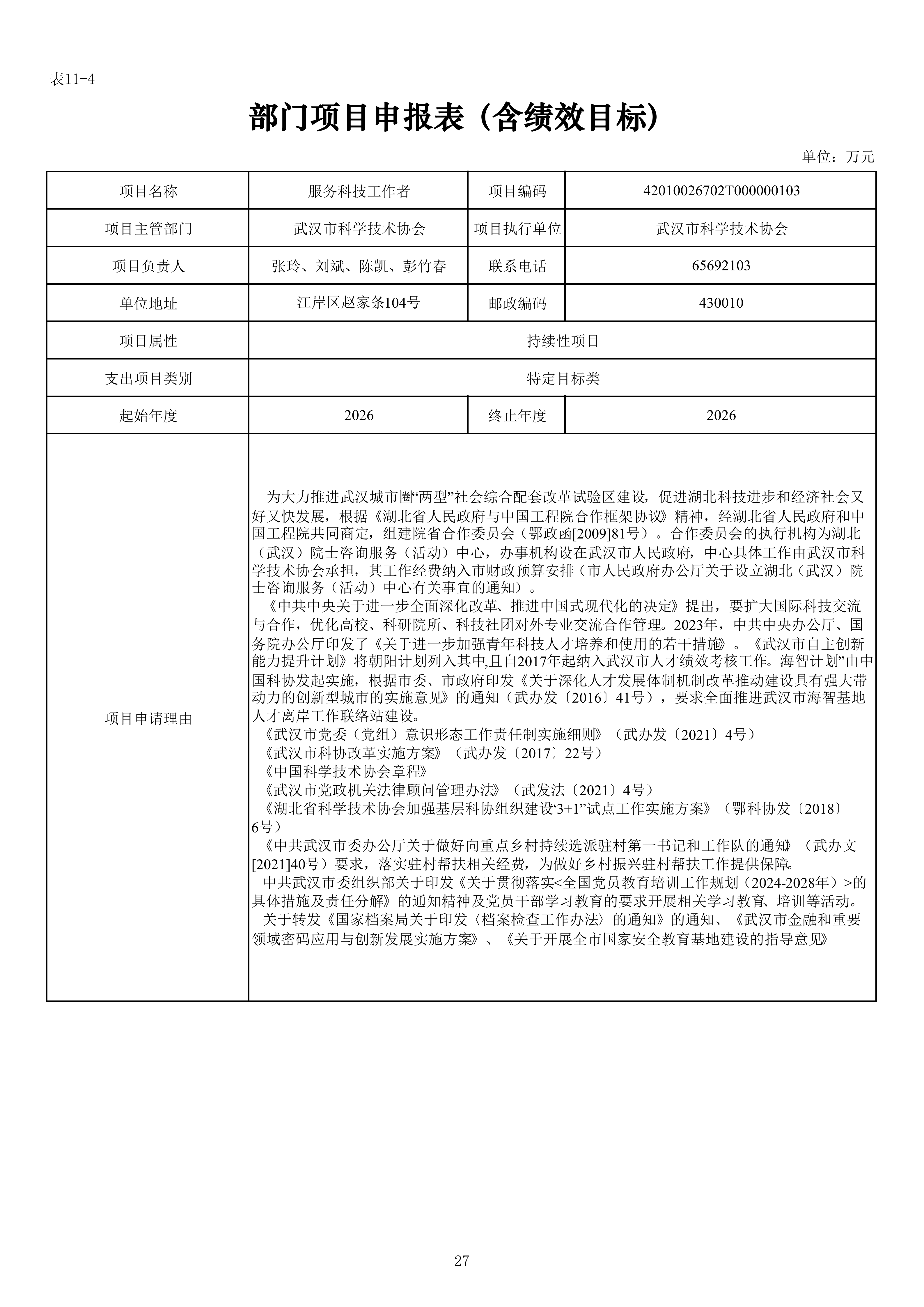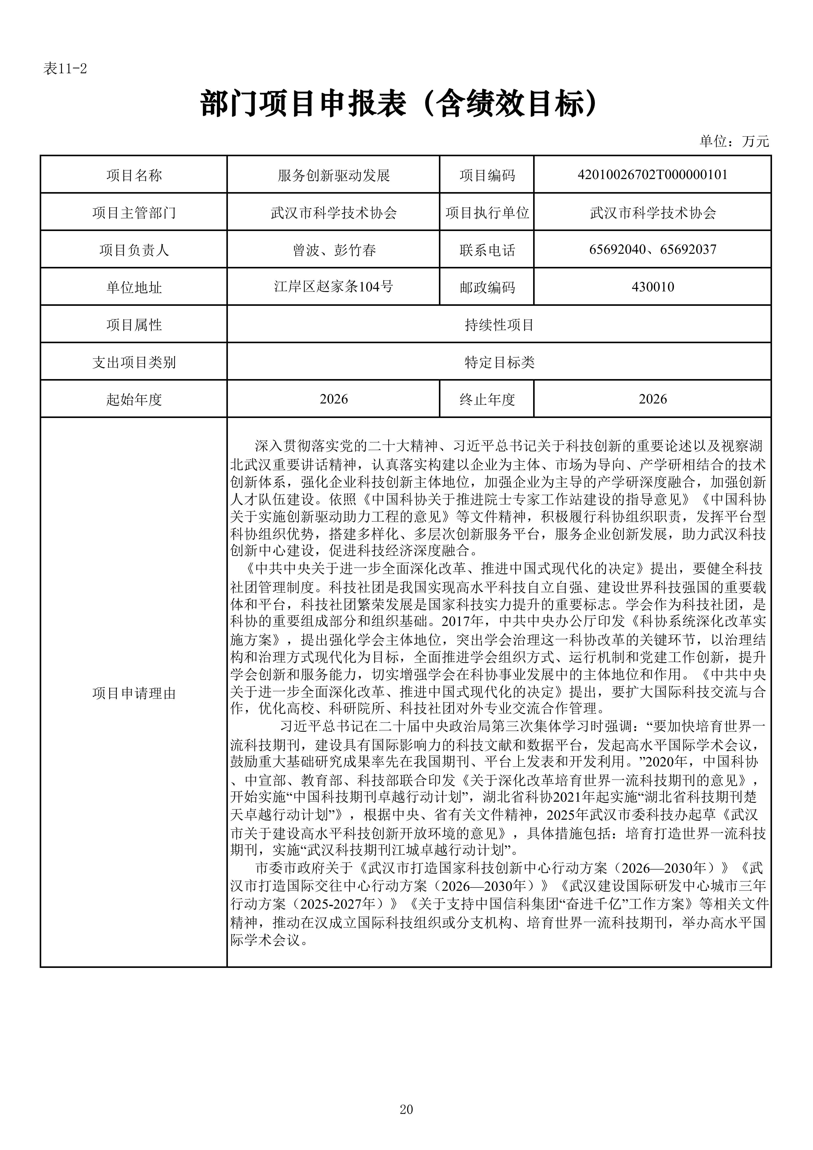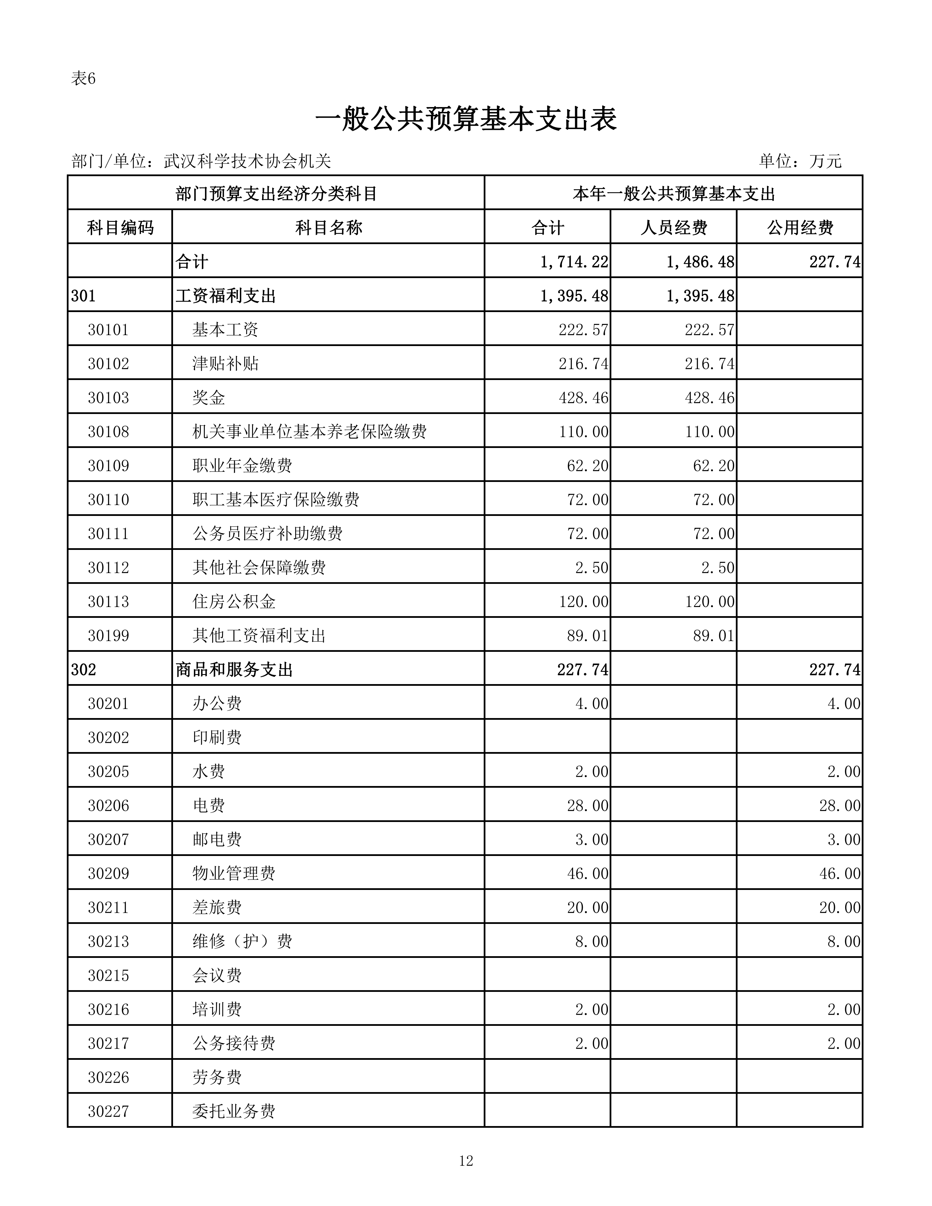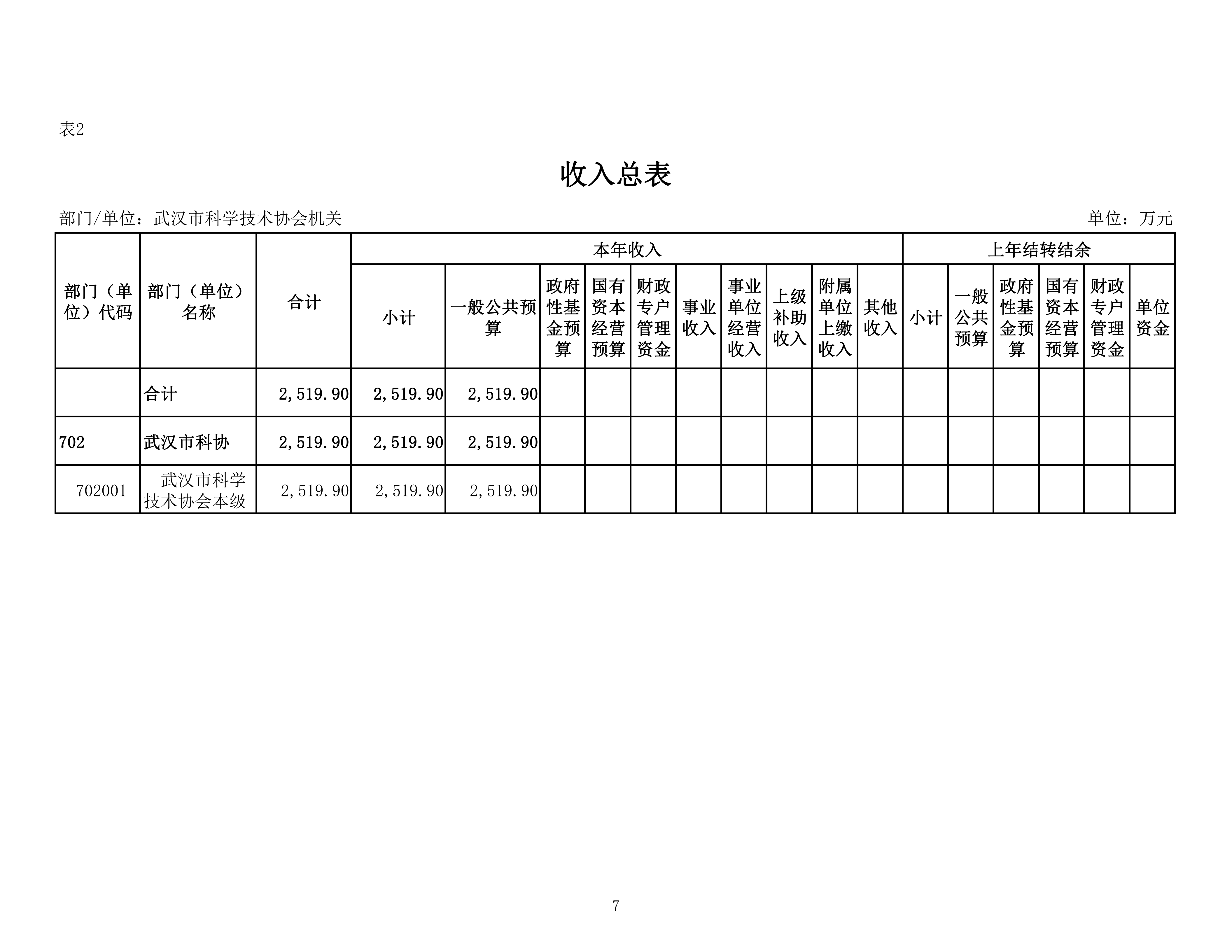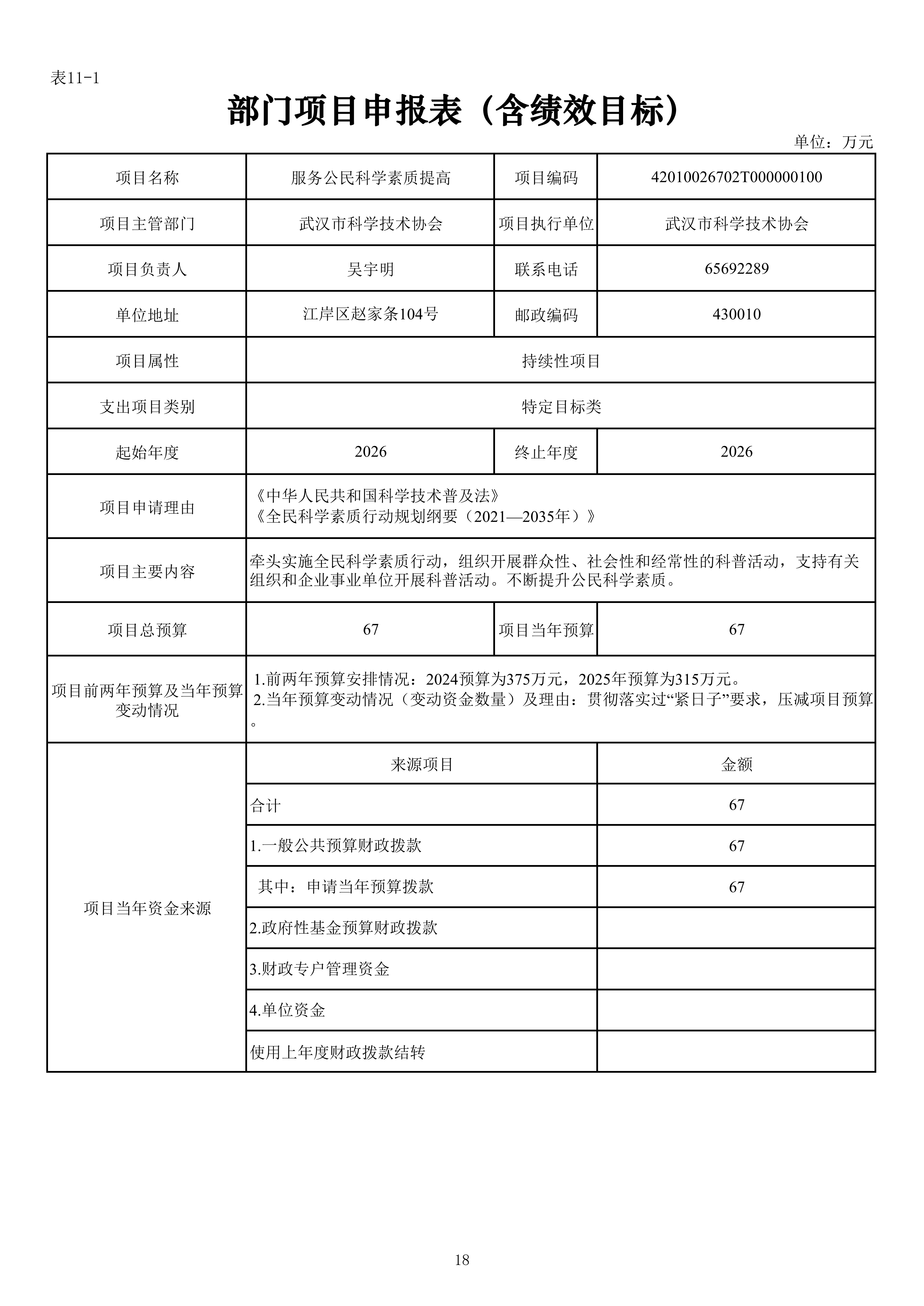 武汉市科学技术协会机关2026年单位预算