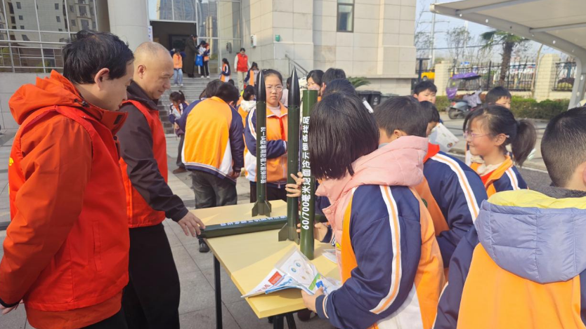 现场设置了丰富的互动与展示环节。工作人员向学生发放气象科普手册、宣传折页、武汉科技报等资料,并通过气象知识问答、现场提问互动,充分调动孩子们的学习热情。活动还集中播放气象科普动画,直观展示天气预报制作流程、雷电防御、暴雨防范等关键知识,让抽象科学变得生动可感。在实物展示区,人工增雨发射火箭装置与火箭弹模型吸引了同学们驻足围观,工作人员详细讲解增雨原理,激发大家探索科学、关注气象的浓厚兴趣。