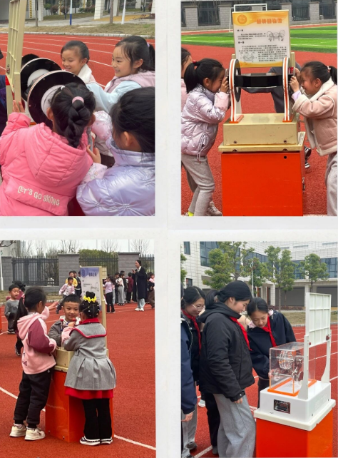 科普大篷车被师生们亲切地称为“流动的科技馆”,车上搭载了“最速降线”“锥体上滚”“看谁跑得快”“翻转的镜像”等数十件经典科普展品。在黄陵小学和马影河学校的操场上,同学们纷纷围聚在展品前,亲手操作、仔细观察、热烈讨论。