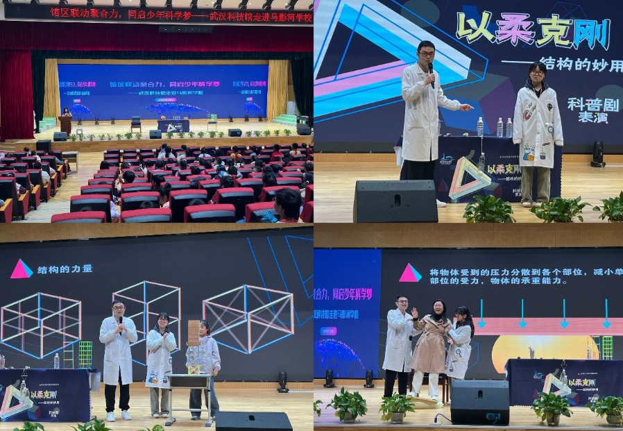 3月26日,武汉科技馆的科普团队再次启程,将科学盛宴带到了马影河学校。此次进校园活动延续了科普大篷车的互动体验,并再次以两场精心设计的科学实验秀点燃了同学们的科学热情。