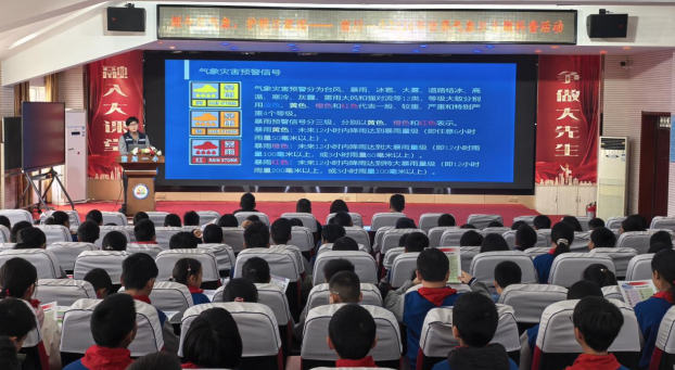 活动还特别设置了气象科普讲座环节,在报告厅内,工作人员向学生发放气象科普手册等资料,深入浅出地讲解了天气预报的制作过程、气象灾害的形成原因及防范措施,并通过现场提问互动,充分调动孩子们的学习热情,进一步提升了全校师生的防灾避险意识。